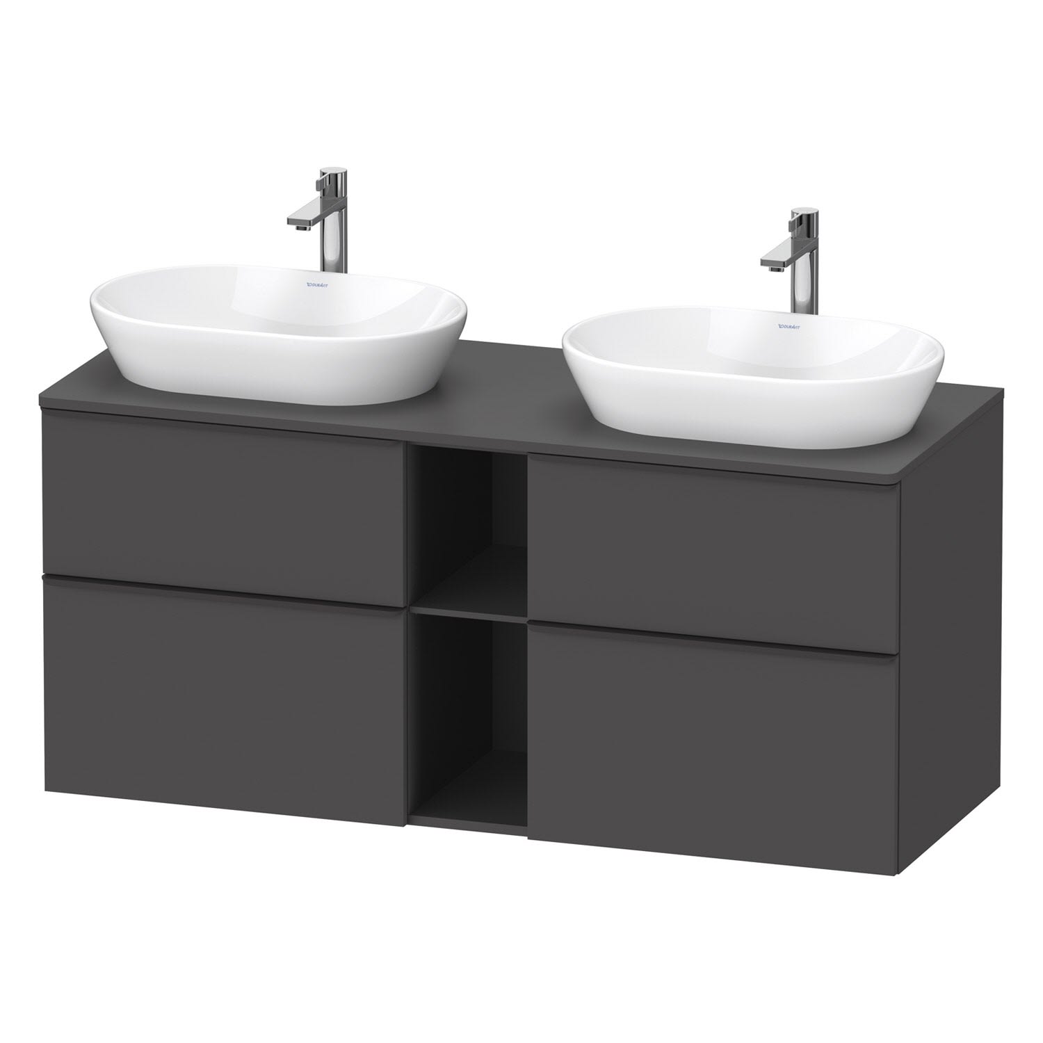 Duravit D-Neo Konsolenwaschtischunterbau für 2 Waschtische 140 x 66,4 cm, 4 Auszüge, Griff diamantschwarz