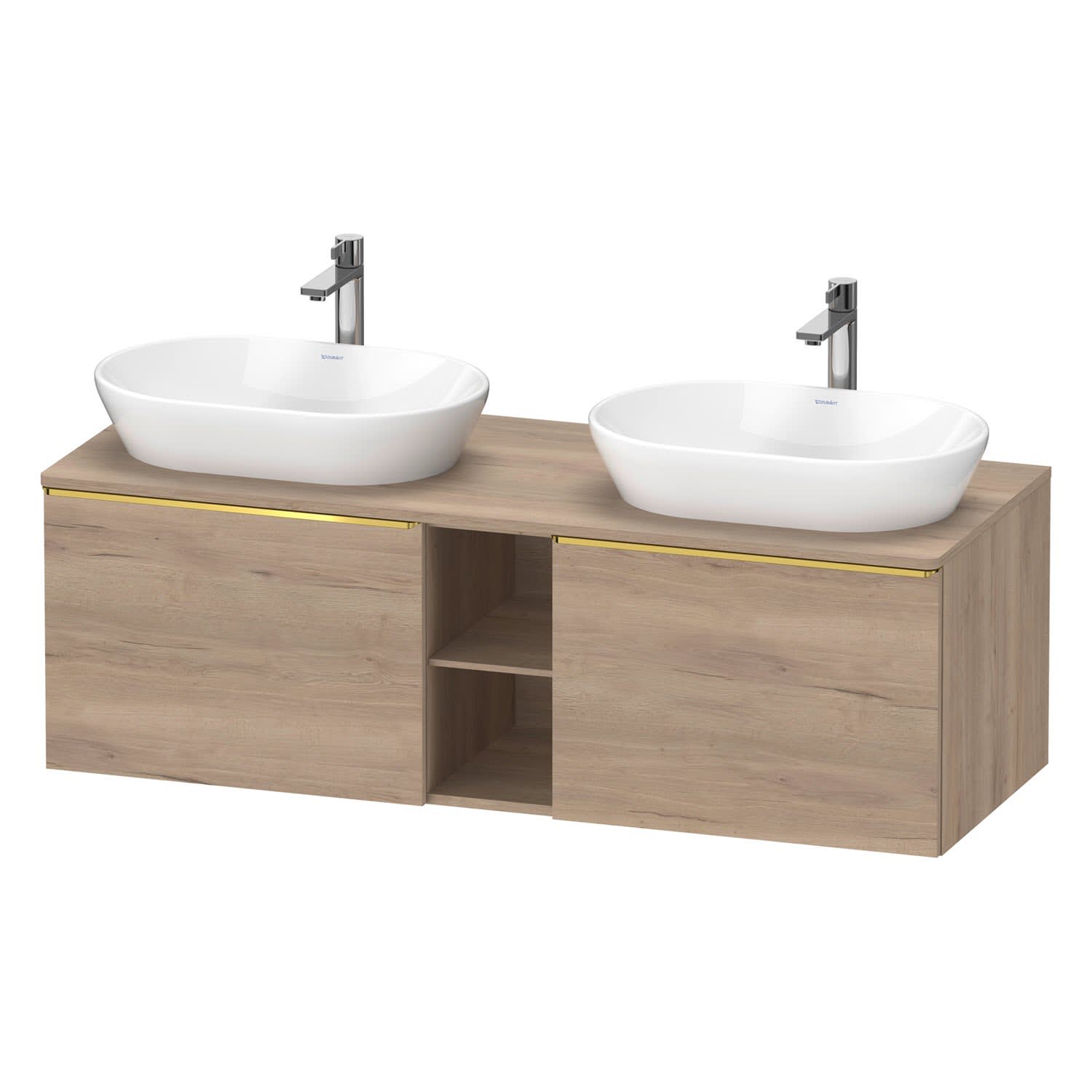 Duravit D-Neo Konsolenwaschtischunterbau für 2 Waschtische 140 x 45,9 cm, 2 Auszüge, Griff gold poliert