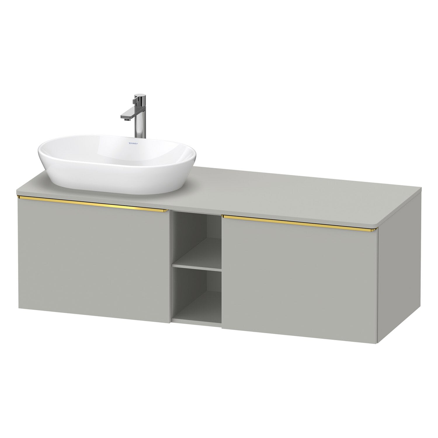 Duravit D-Neo Konsolenwaschtischunterbau für Waschtisch links 140 x 45,9 cm, 2 Auszüge, Griff gold poliert
