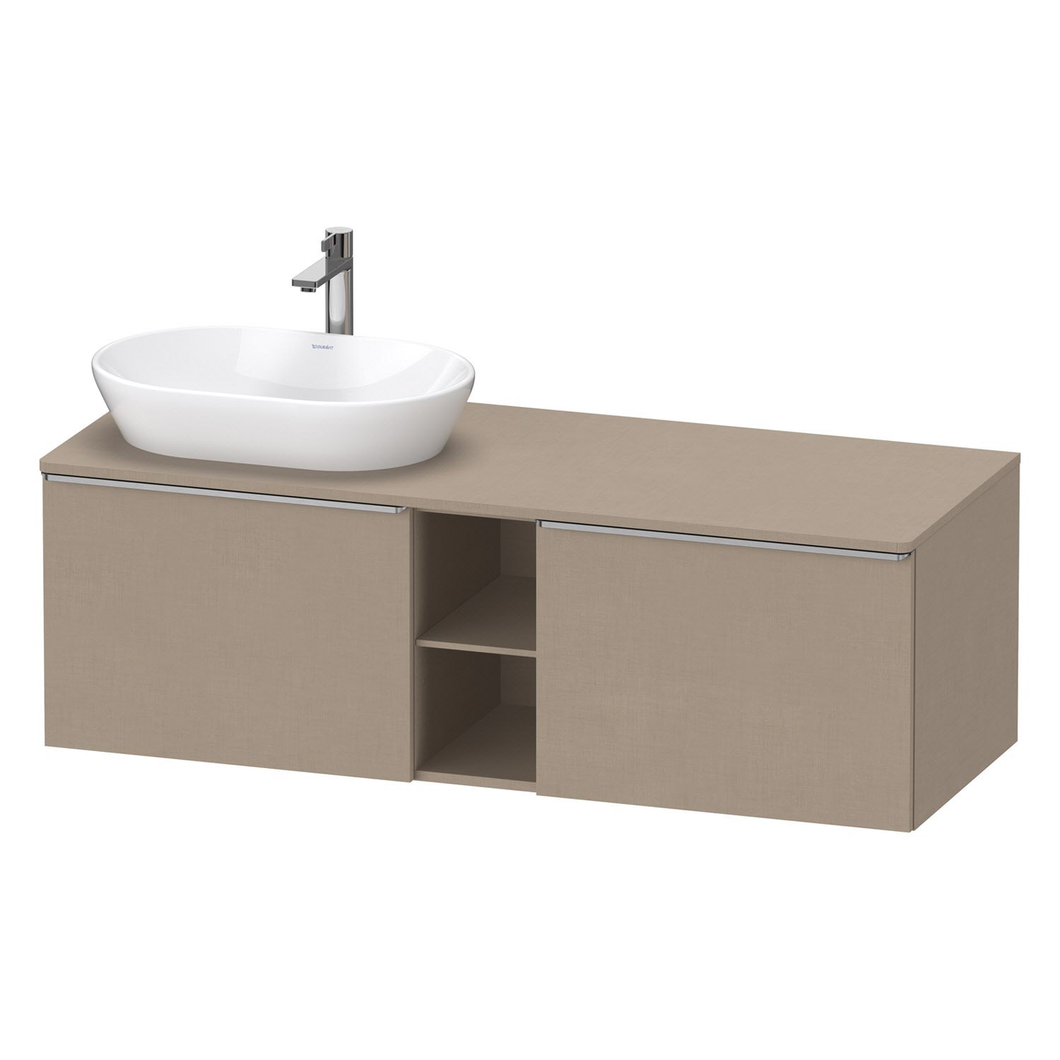 Duravit D-Neo Konsolenwaschtischunterbau für Waschtisch links 140 x 45,9 cm, 2 Auszüge, Griff edelstahl gebürstet