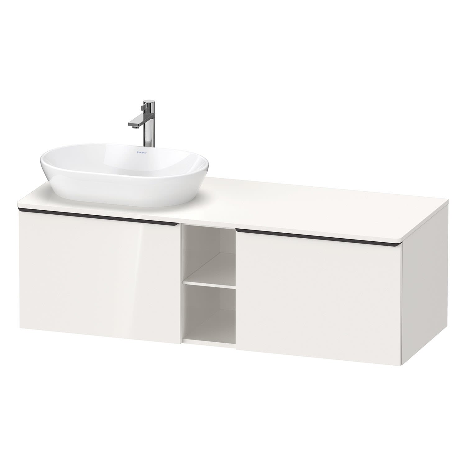 Duravit D-Neo Konsolenwaschtischunterbau für Waschtisch links 140 x 45,9 cm, 2 Auszüge, Griff diamantschwarz