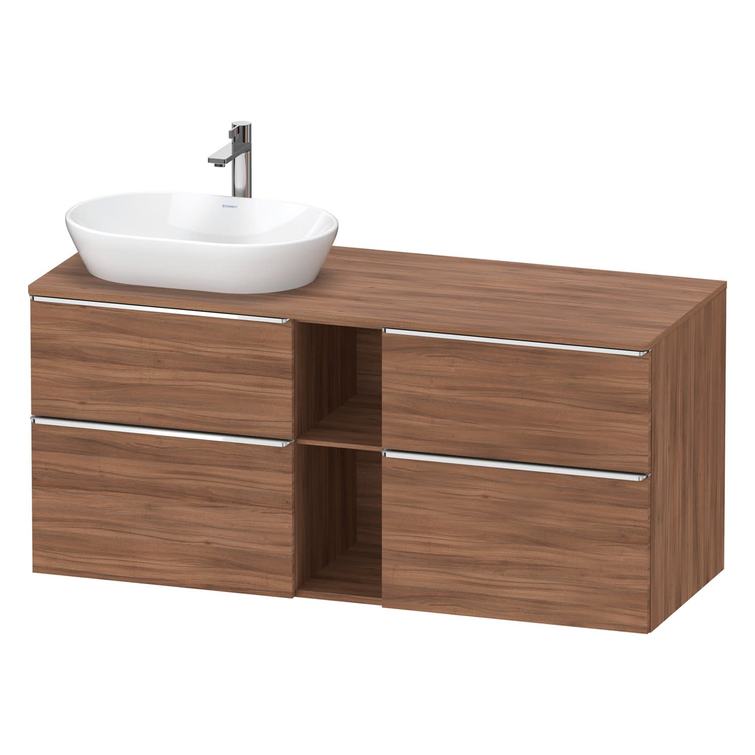 Duravit D-Neo Konsolenwaschtischunterbau für Waschtisch links 140 x 66,4 cm, 4 Auszüge, Griff chrom