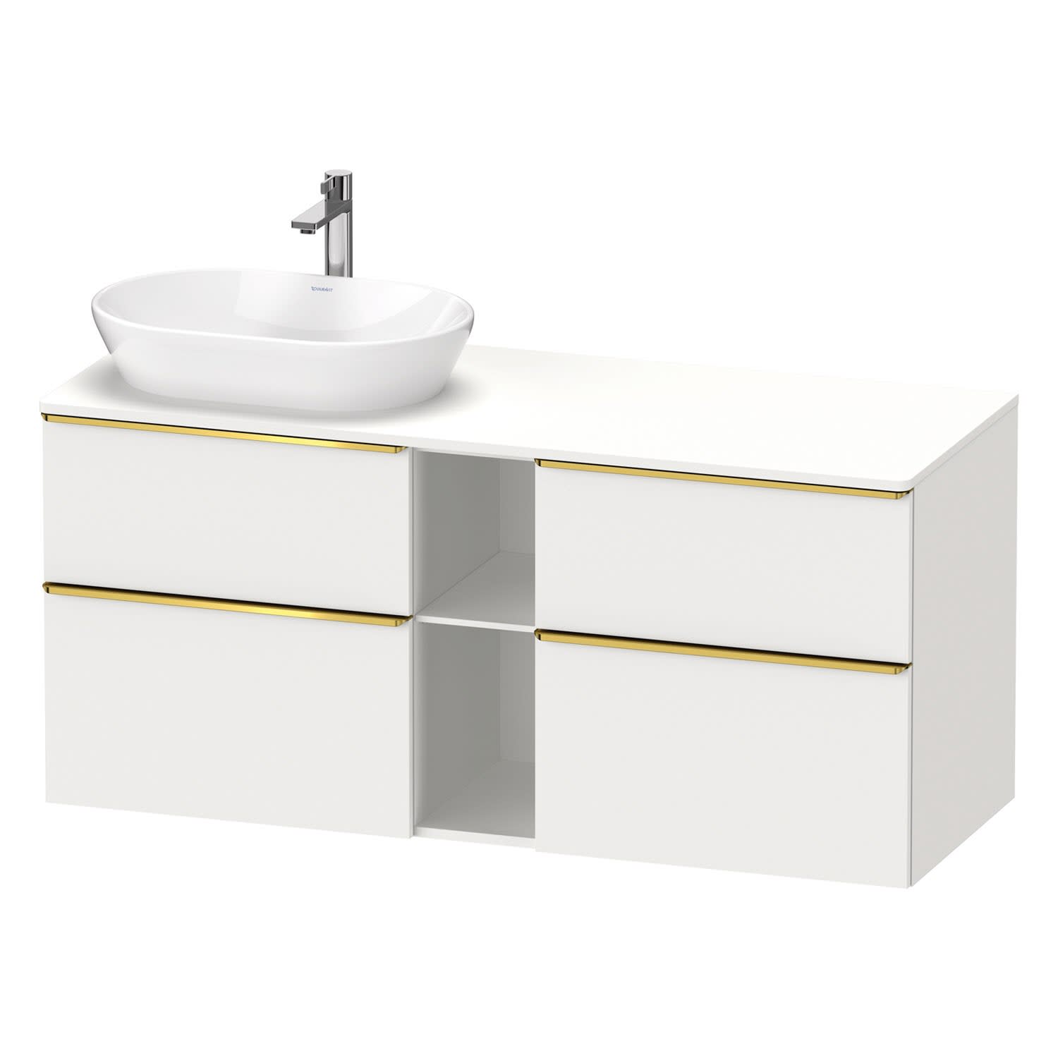 Duravit D-Neo Konsolenwaschtischunterbau für Waschtisch links 140 x 66,4 cm, 4 Auszüge, Griff gold poliert
