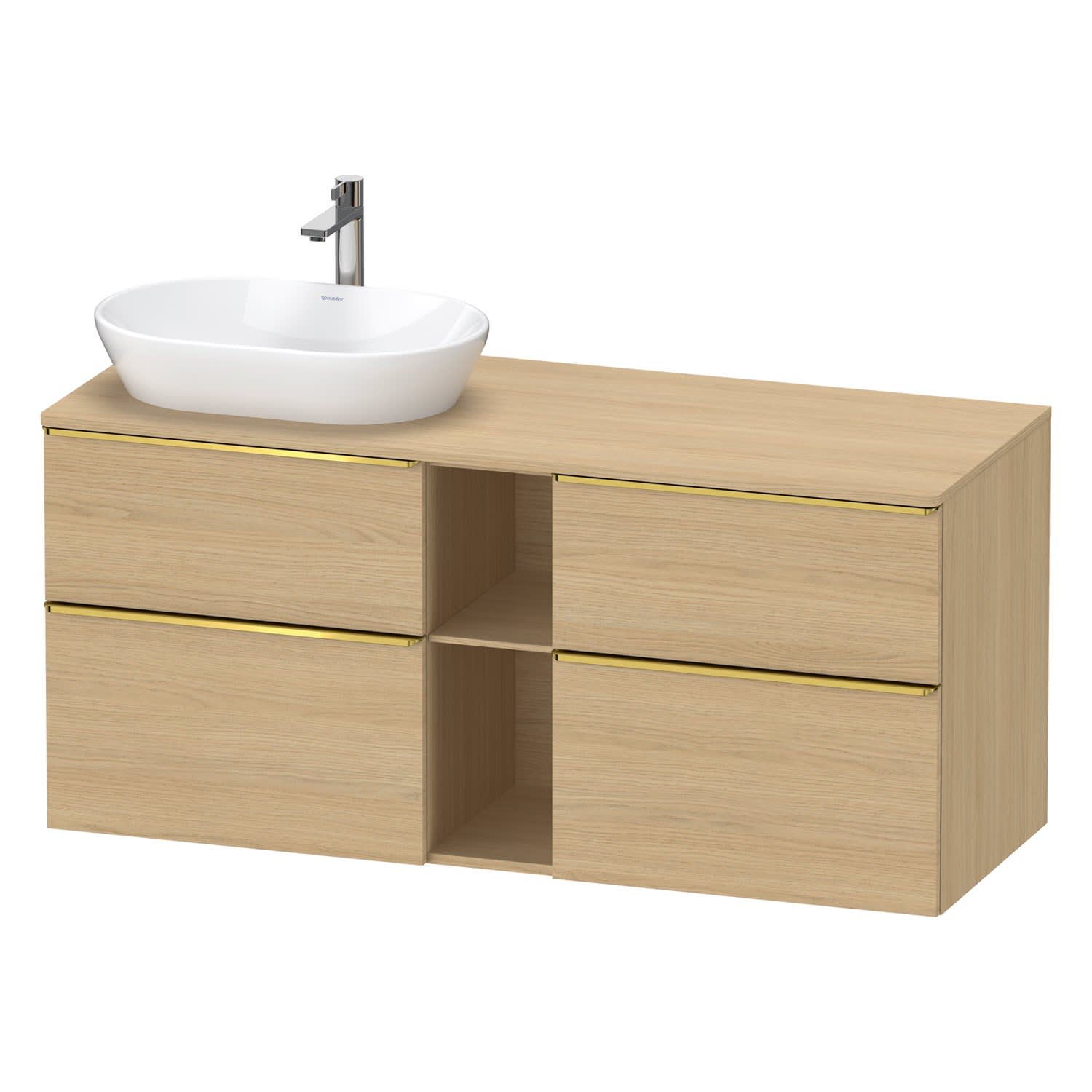 Duravit D-Neo Konsolenwaschtischunterbau für Waschtisch links 140 x 66,4 cm, 4 Auszüge, Griff gold poliert