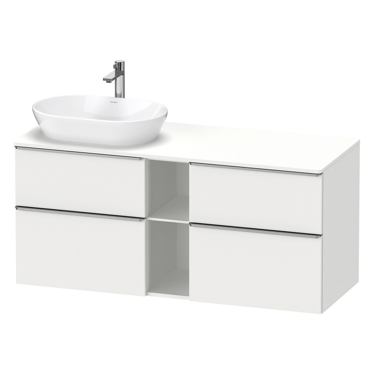 Duravit D-Neo Konsolenwaschtischunterbau für Waschtisch links 140 x 66,4 cm, 4 Auszüge, Griff edelstahl gebürstet