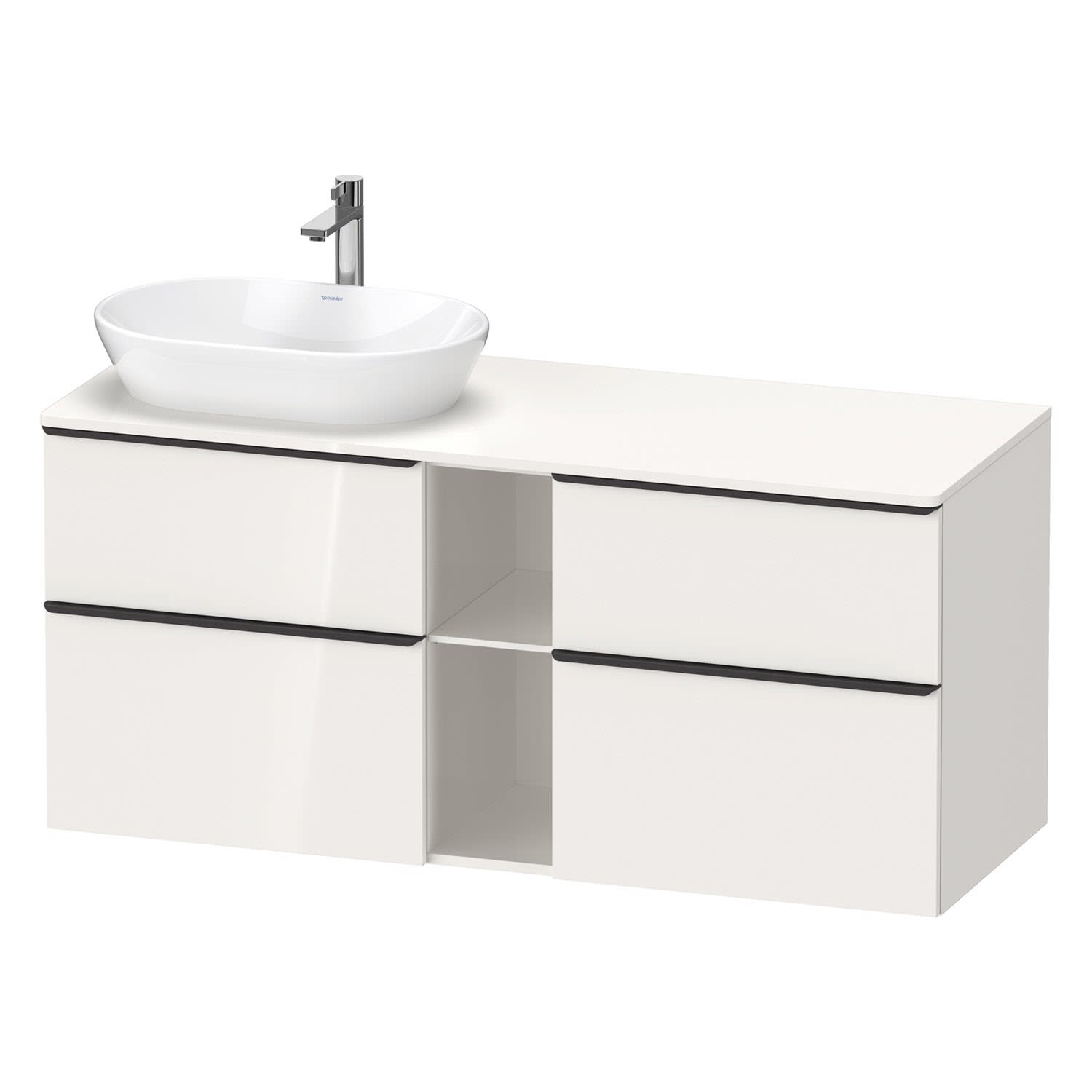 Duravit D-Neo Konsolenwaschtischunterbau für Waschtisch links 140 x 66,4 cm, 4 Auszüge, Griff diamantschwarz