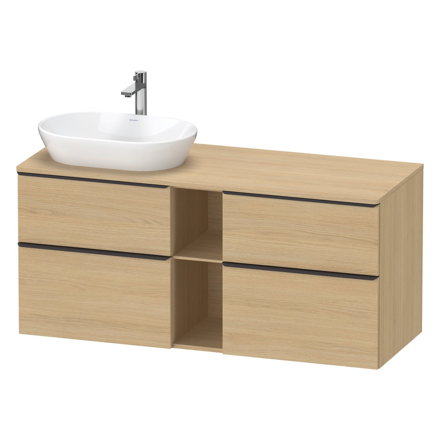 Duravit D-Neo Konsolenwaschtischunterbau für Waschtisch links 140 x 66,4 cm, 4 Auszüge, Griff diamantschwarz