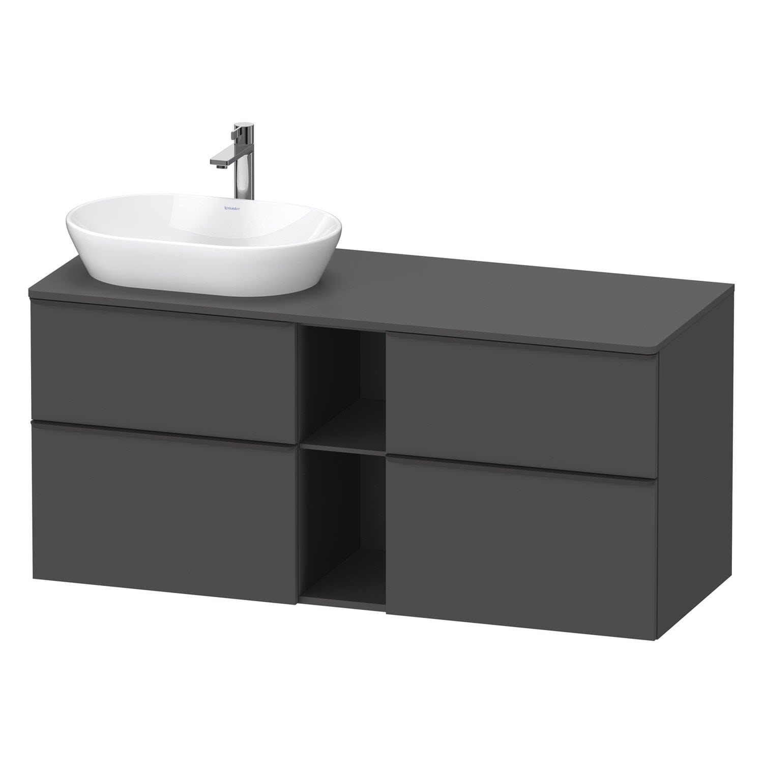 Duravit D-Neo Konsolenwaschtischunterbau für Waschtisch links 140 x 66,4 cm, 4 Auszüge, Griff diamantschwarz