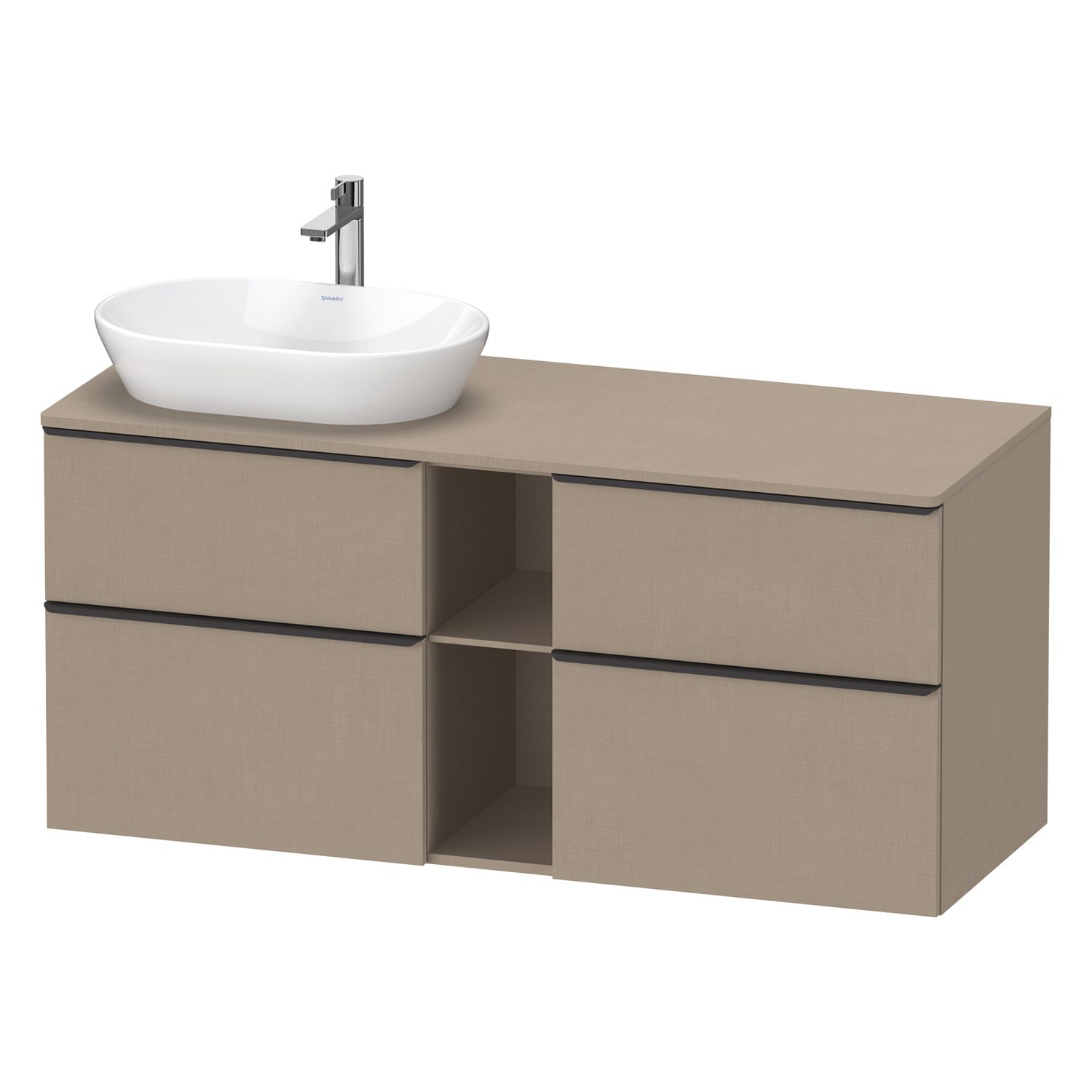 Duravit D-Neo Konsolenwaschtischunterbau für Waschtisch links 140 x 66,4 cm, 4 Auszüge, Griff diamantschwarz