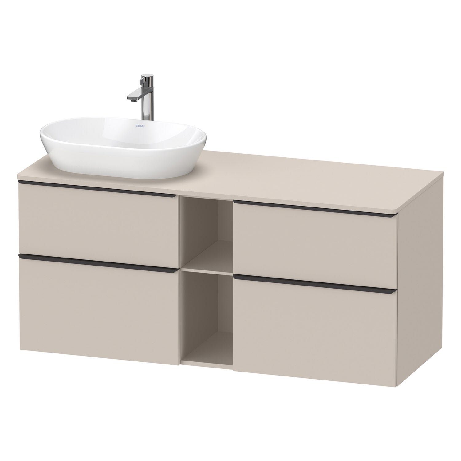 Duravit D-Neo Konsolenwaschtischunterbau für Waschtisch links 140 x 66,4 cm, 4 Auszüge, Griff diamantschwarz