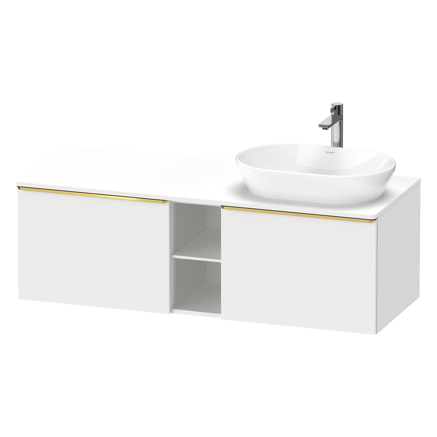 Duravit D-Neo Konsolenwaschtischunterbau für Waschtisch rechts 140 x 45,9 cm, 2 Auszüge, Griff gold poliert