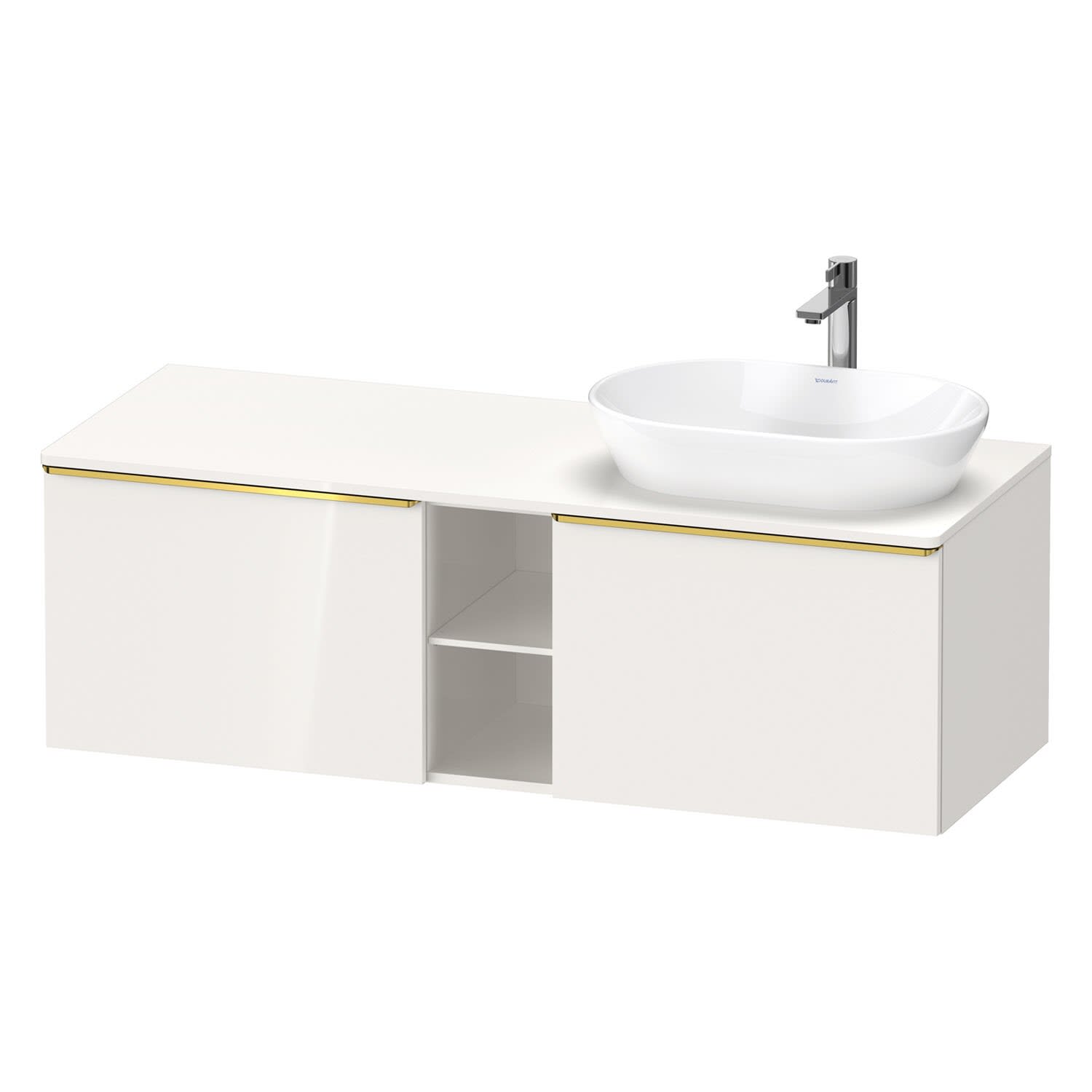 Duravit D-Neo Konsolenwaschtischunterbau für Waschtisch rechts 140 x 45,9 cm, 2 Auszüge, Griff gold poliert