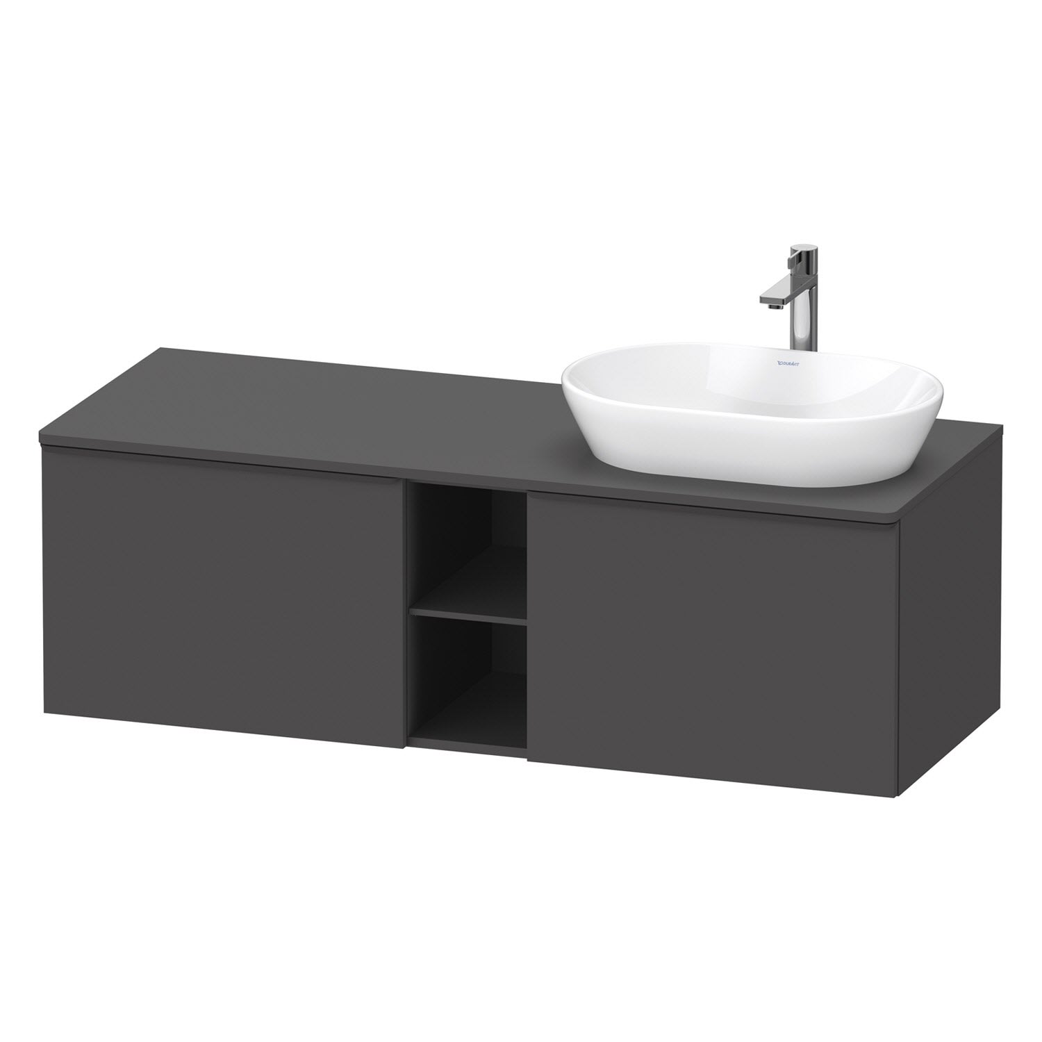 Duravit D-Neo Konsolenwaschtischunterbau für Waschtisch rechts 140 x 45,9 cm, 2 Auszüge, Griff diamantschwarz