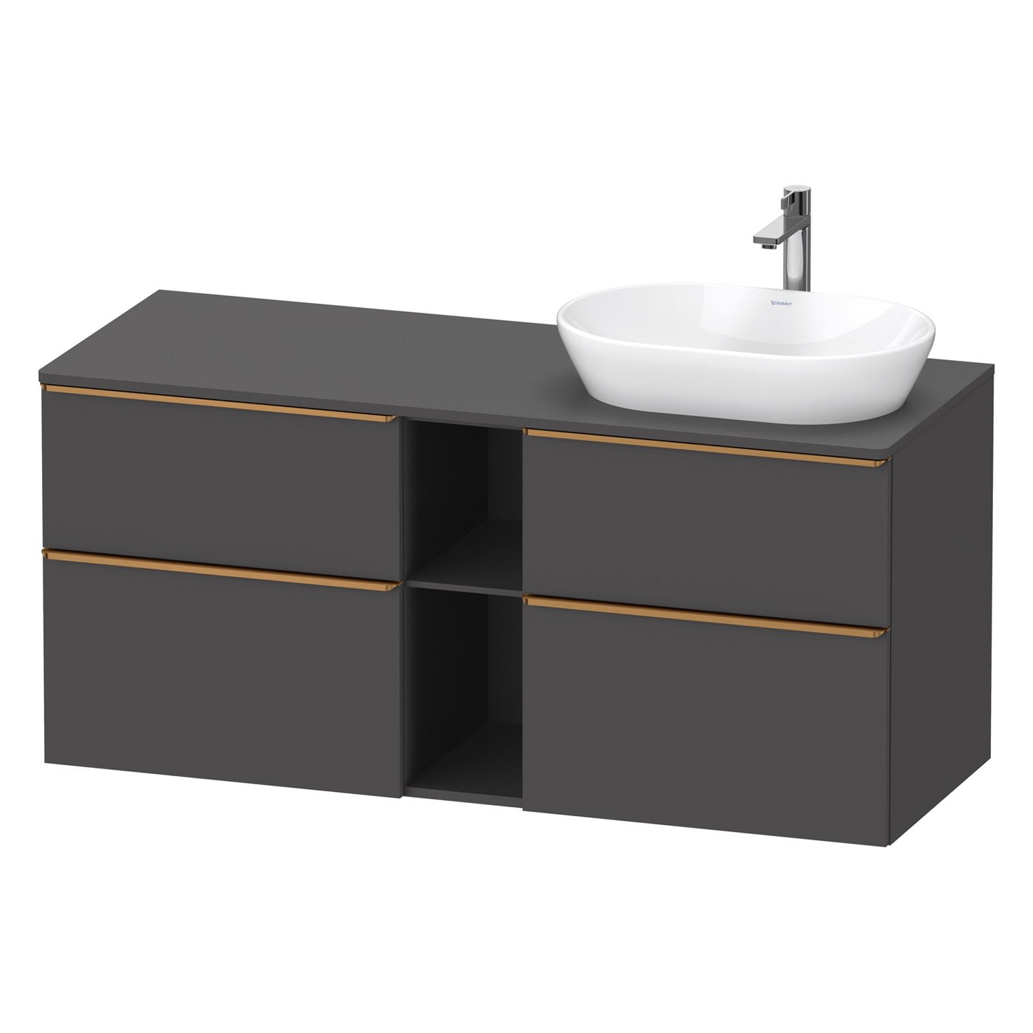 Duravit D-Neo Konsolenwaschtischunterbau für Waschtisch rechts 140 x 66,4 cm, 4 Auszüge, Griff bronze gebürstet