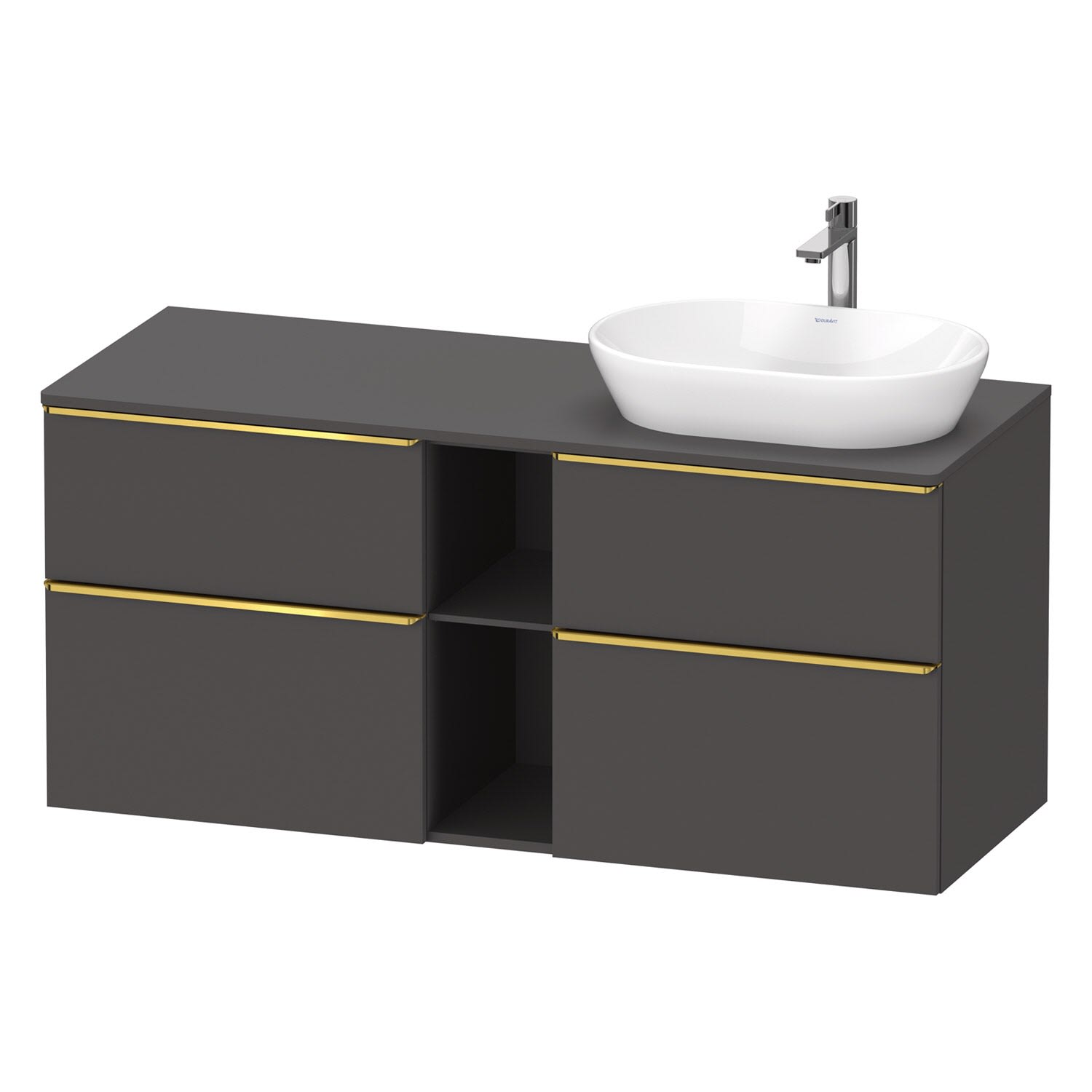 Duravit D-Neo Konsolenwaschtischunterbau für Waschtisch rechts 140 x 66,4 cm, 4 Auszüge, Griff gold poliert
