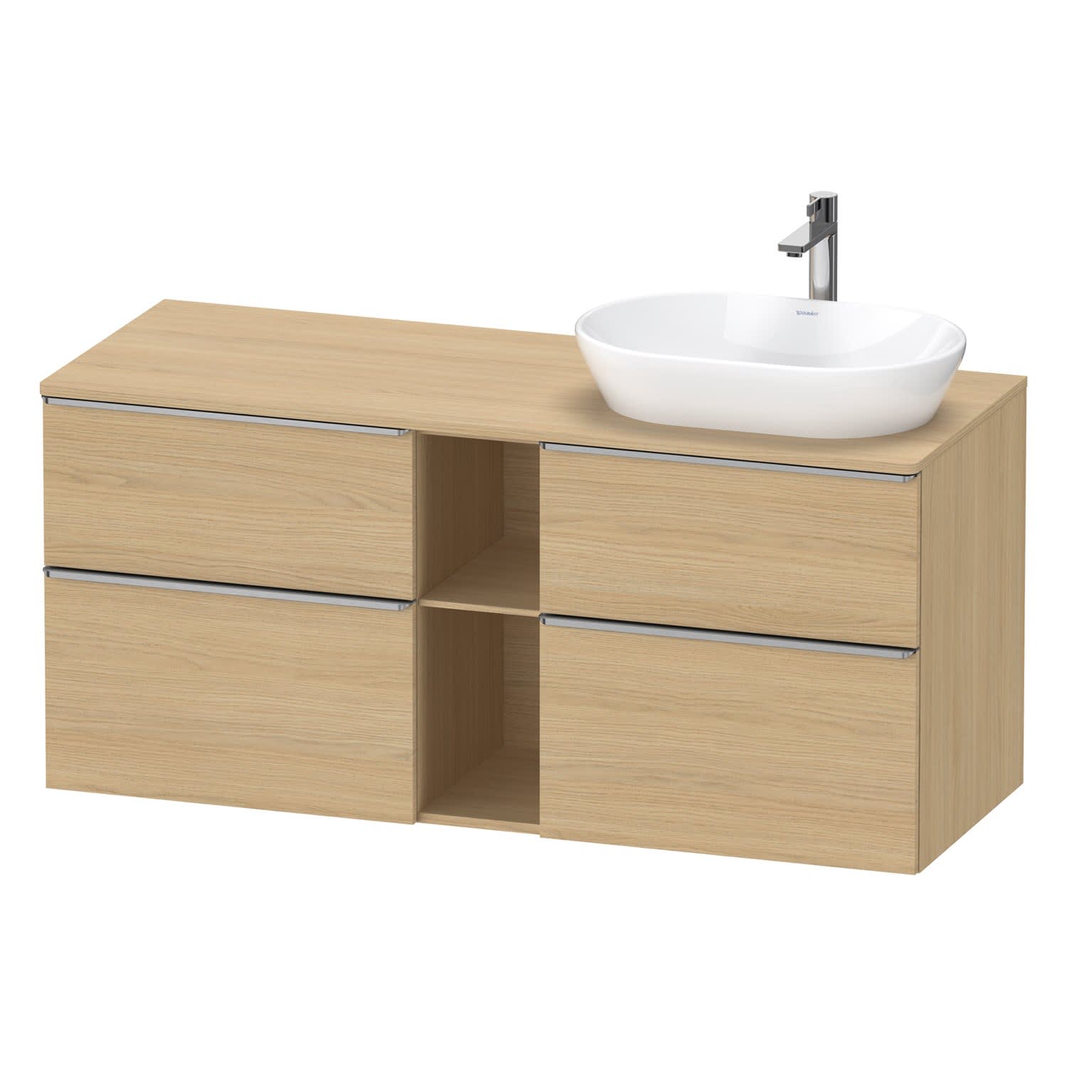 Duravit D-Neo Konsolenwaschtischunterbau für Waschtisch rechts 140 x 66,4 cm, 4 Auszüge, Griff edelstahl gebürstet