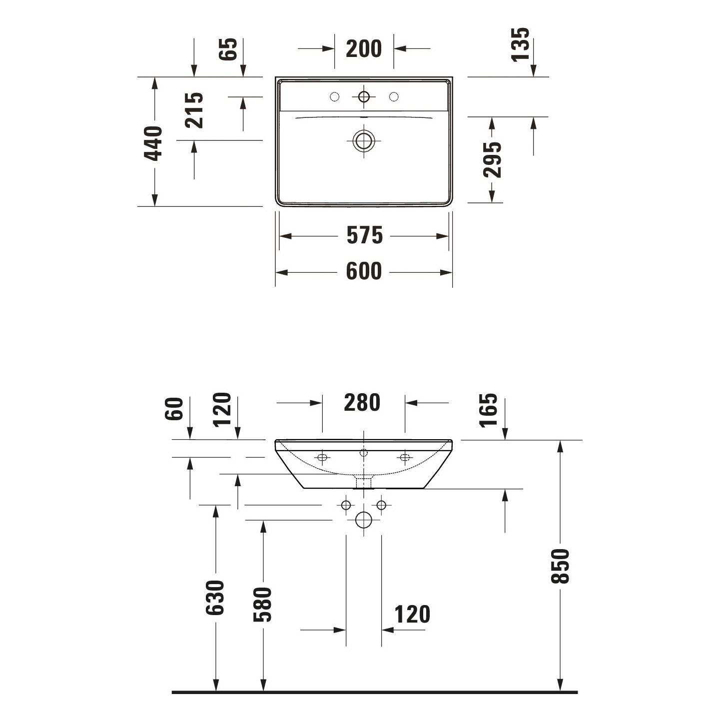 Duravit D-Neo Waschtisch 60 cm, mit 1 Hahnloch und Überlauf