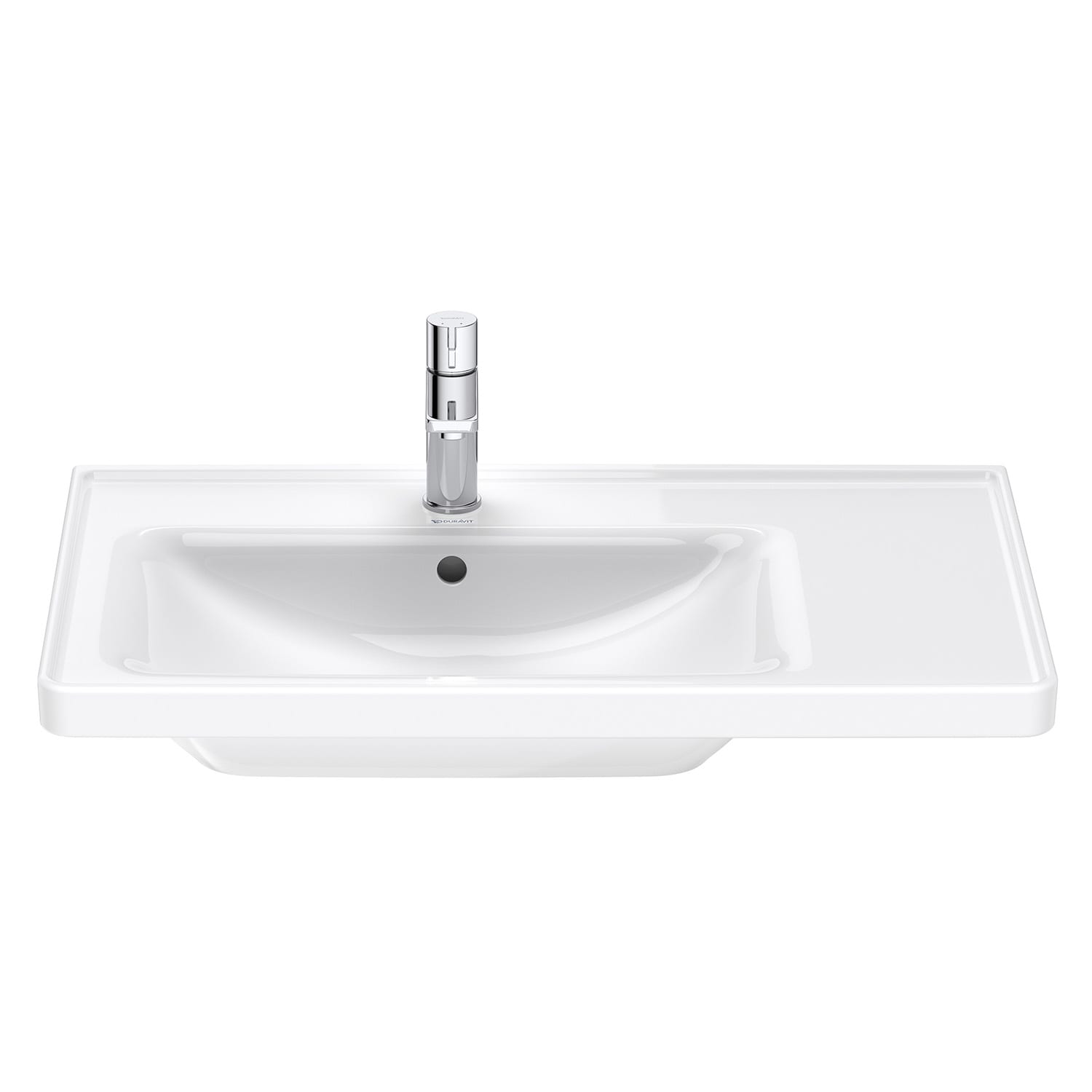 Duravit D-Neo Möbelwaschtisch 80 cm asymmetrisch, mit 1 Hahnloch und Überlauf, Ablage rechts