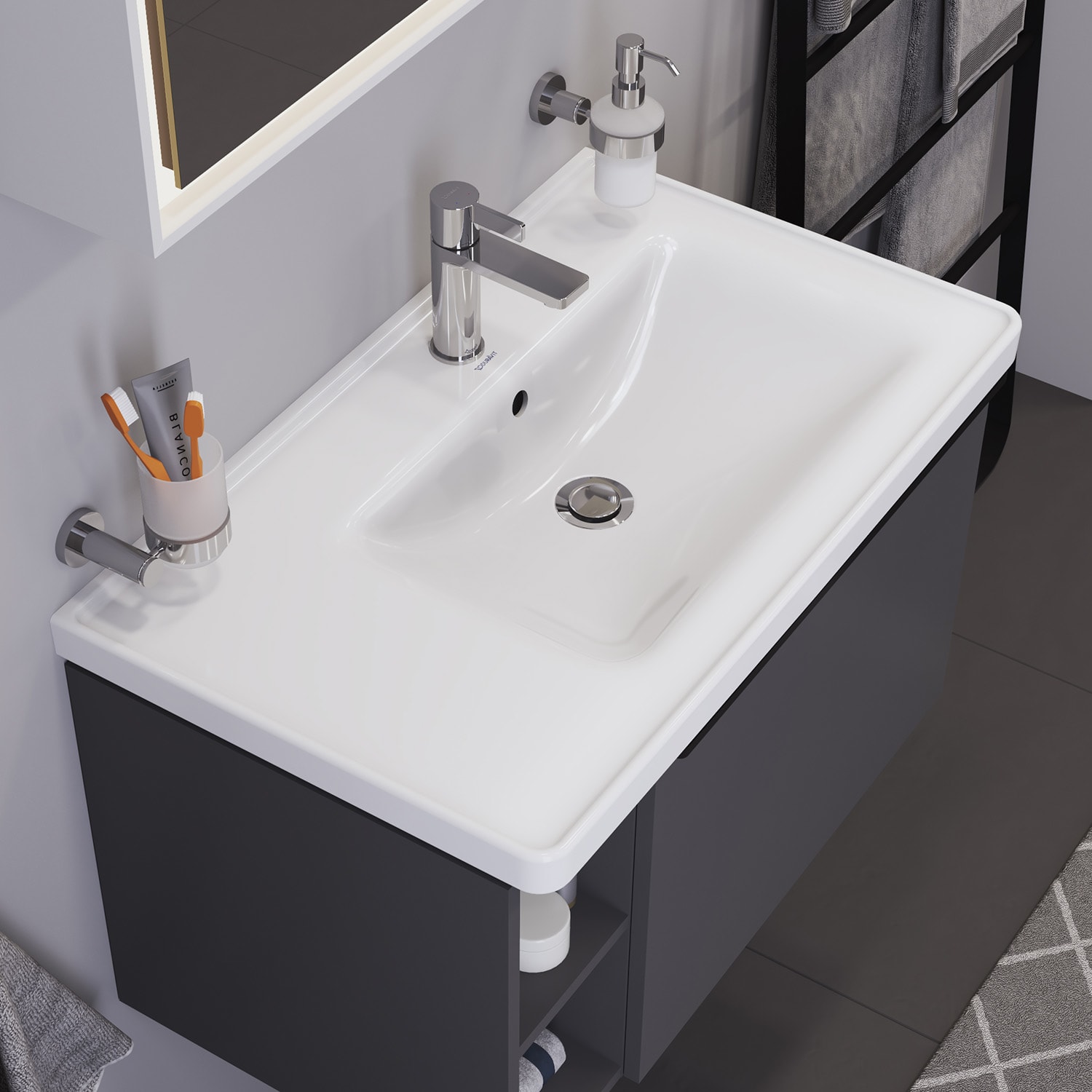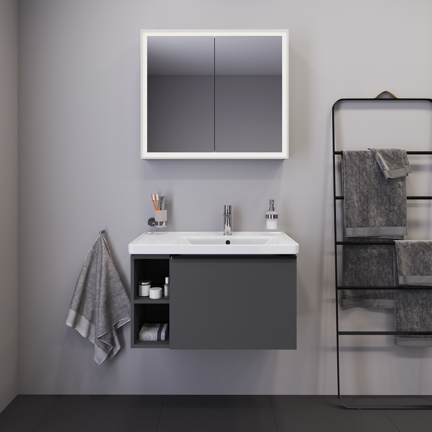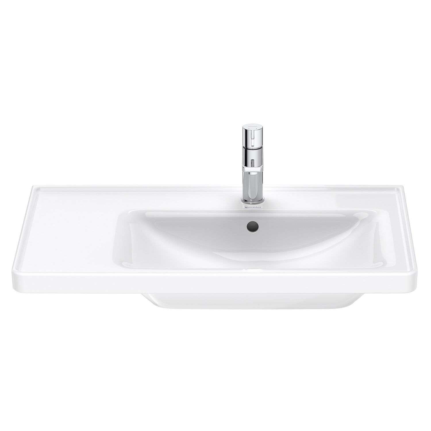 Duravit D-Neo Möbelwaschtisch 80 cm asymmetrisch, mit 1 Hahnloch und Überlauf, Ablage links
