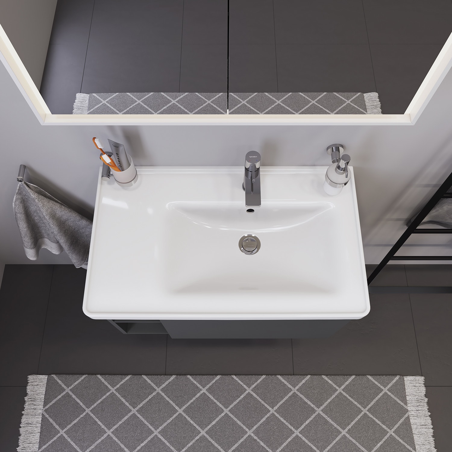 Die reinigungsfreundliche und hygienische Oberfläche zeichnet sich durch ihre Pflegeleichtigkeit aus. Mit der optionalen wasserabweisenden WonderGliss Beschichtung wird die Reinigung sogar noch einfacher. Der Waschtisch fügt sich bei Montage mit den passenden D-Neo Waschbeckenunterschränken bestens ins Gesamtbild ein. Da er hygienisch von unten glasiert ist, eignet sich der Waschtisch aber auch hervorragend für die wandhängende Einzelmontage. Das Modell verfügt über eine Hahnlochbank und einen Überlauf.