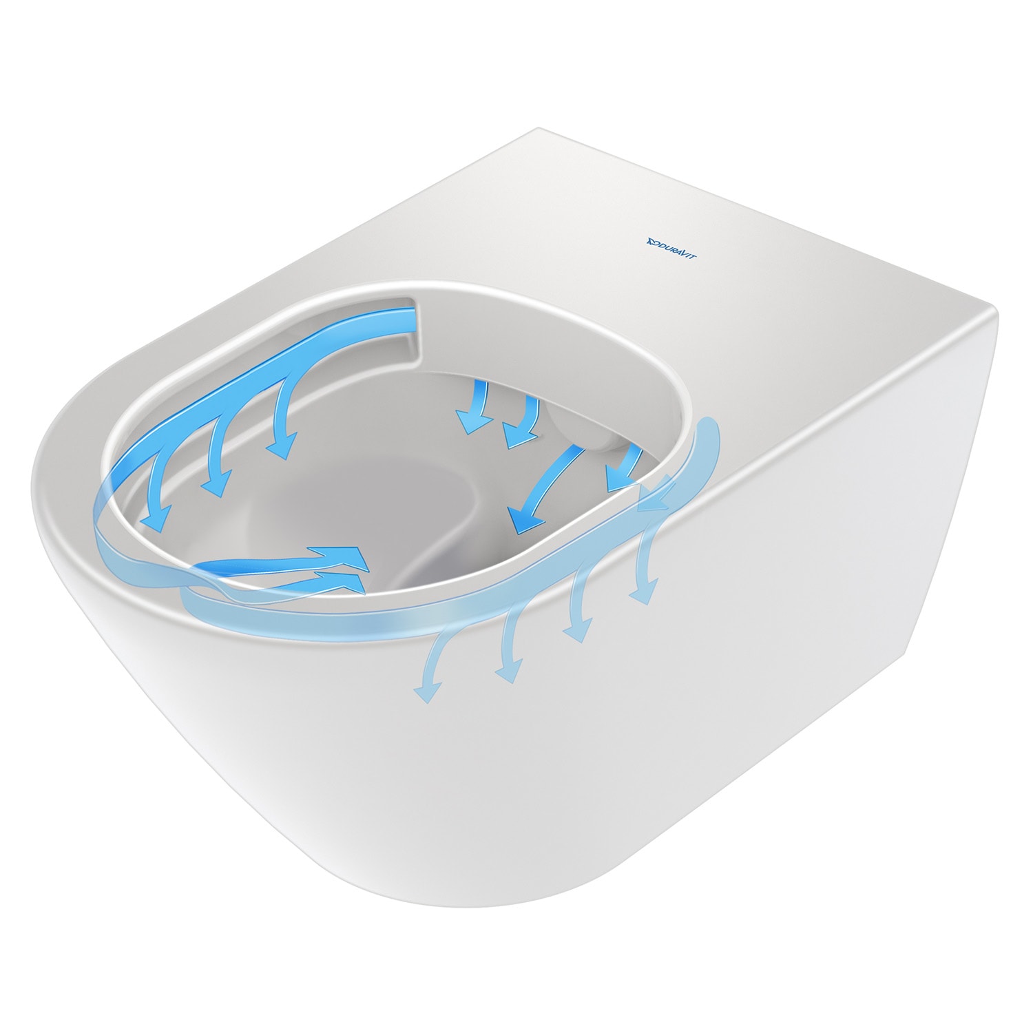- offener Spülrand Duravit Rimless® mit dynamischer Wasserführung: hygienisch einwandfreie Spülergebnisse auch bei kleinen Wassermengen