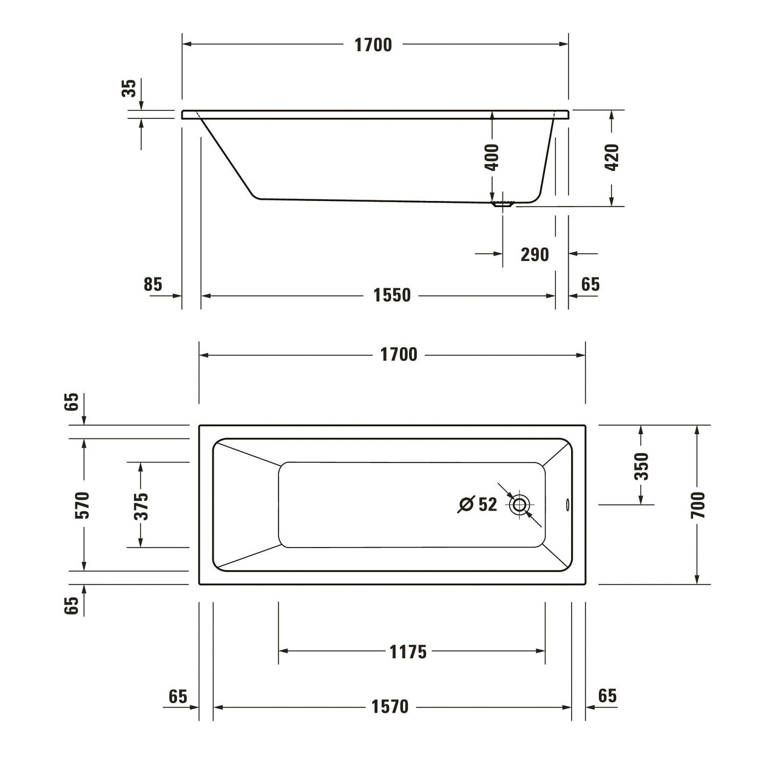 Duravit No. 1 Rechteck-Whirlwanne Jet Project 170 x 70 cm mit 1 Rückenschräge