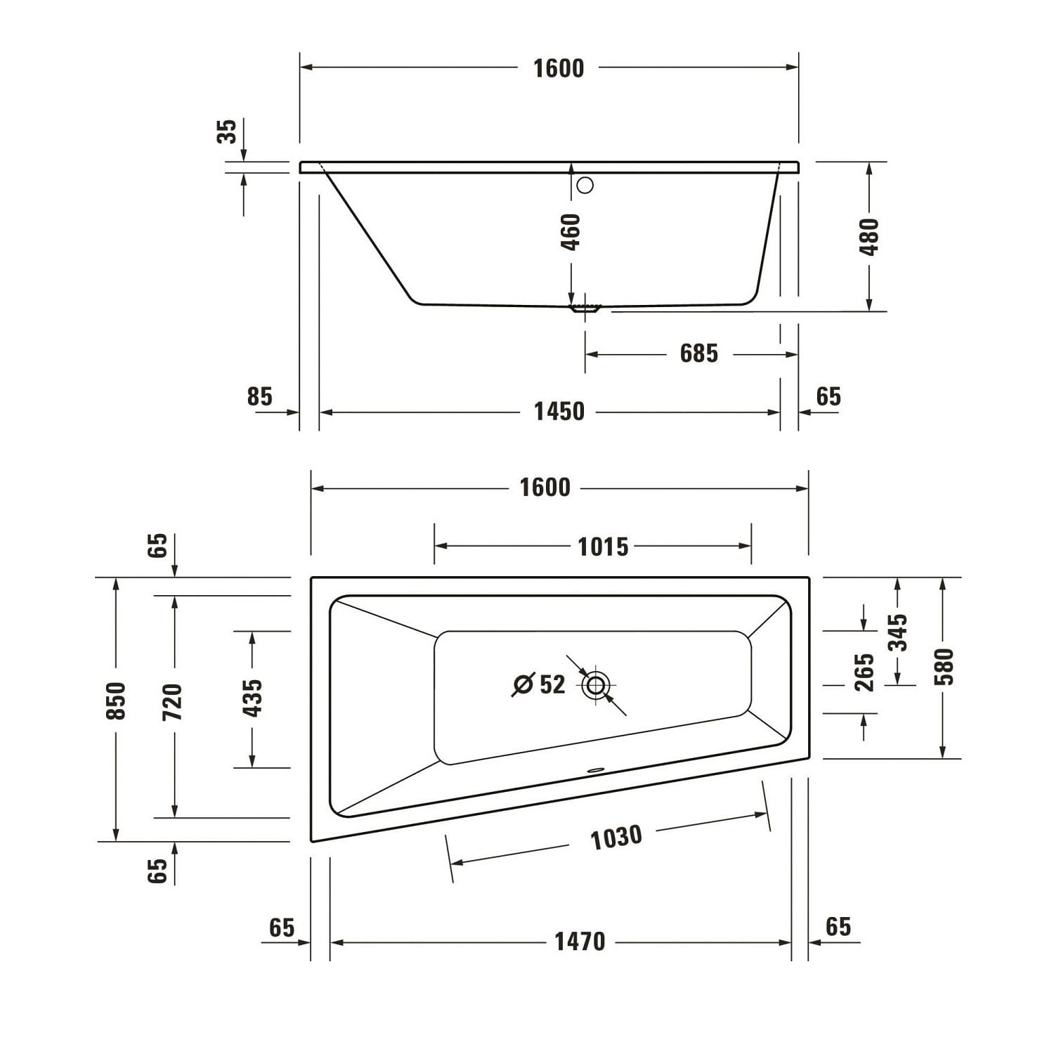Duravit No. 1 Trapez-Badewanne 160 x 85 cm mit 1 Rückenschräge links