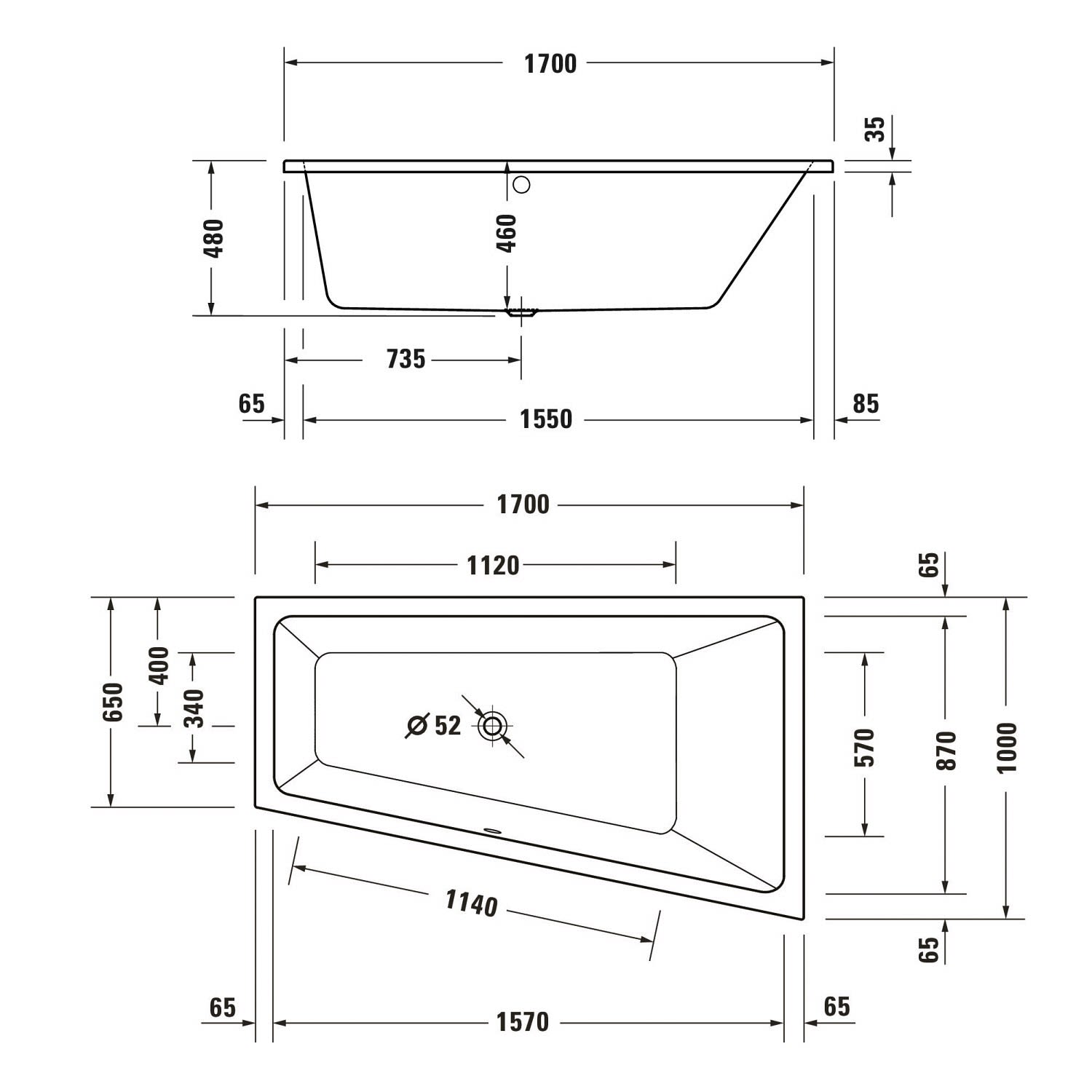 Duravit No. 1 Trapez-Badewanne 170 x 100 cm mit 1 Rückenschräge rechts