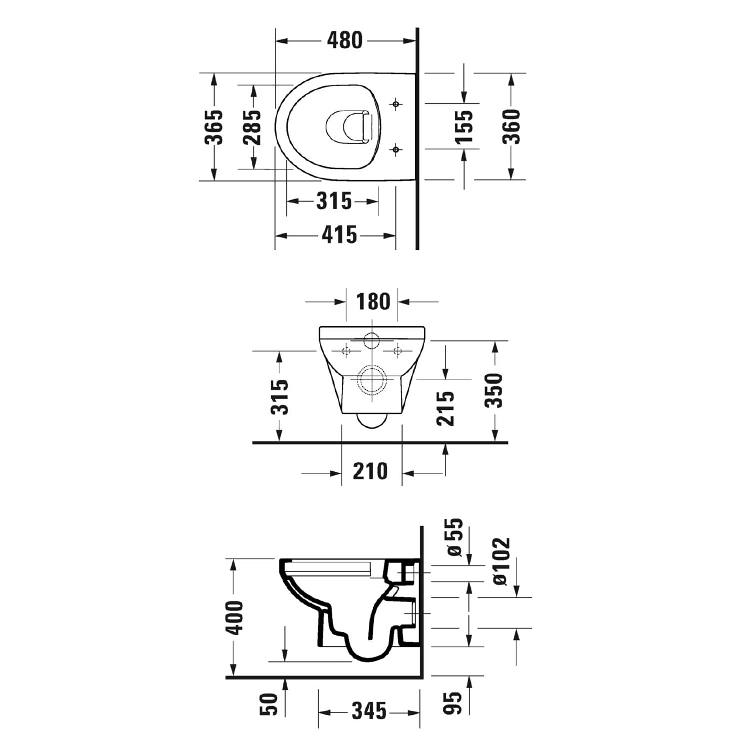 Duravit No. 1 Wand-WC Compact, Rimless