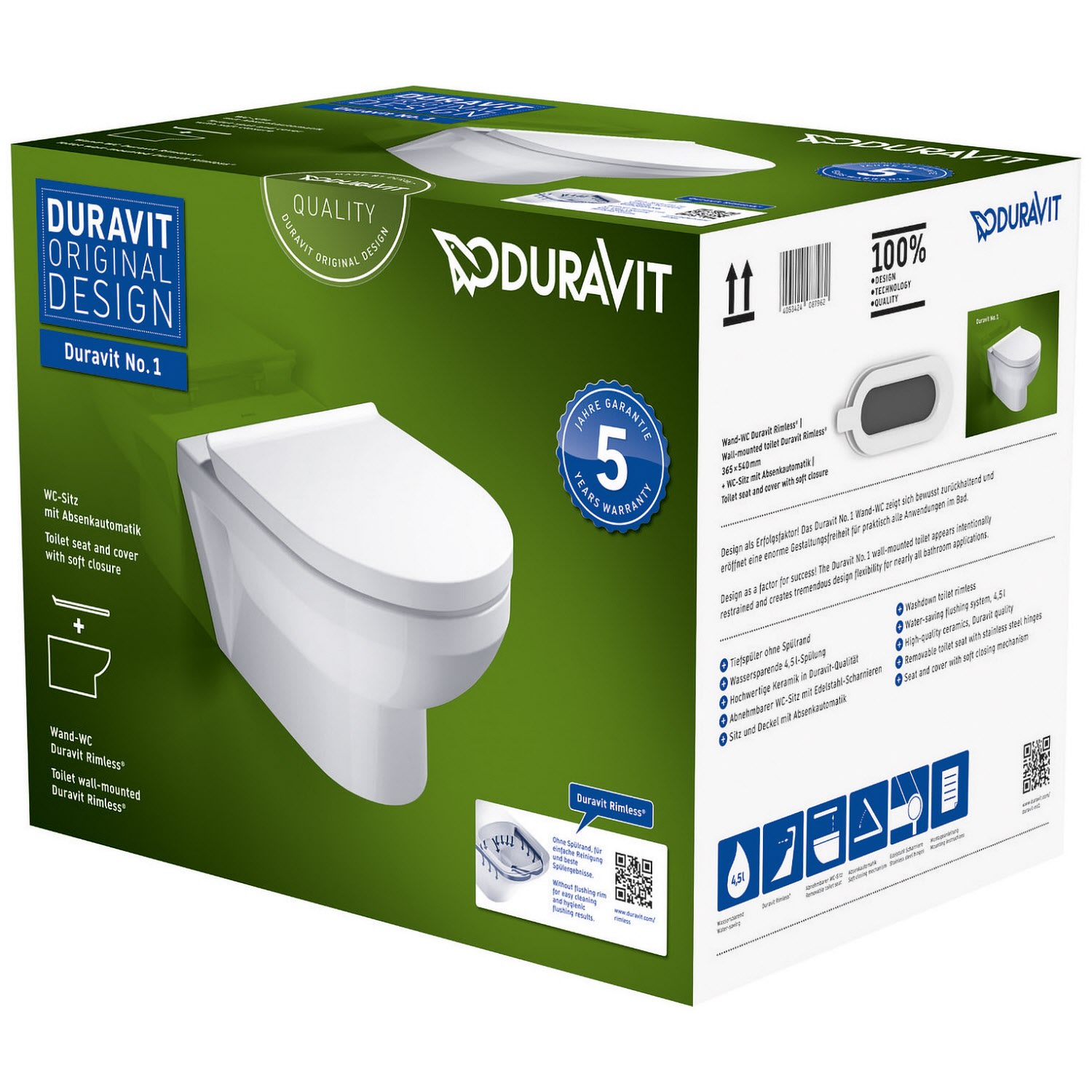 Duravit No. 1 Wand-WC Rimless Set, Compact-Tiefspüler