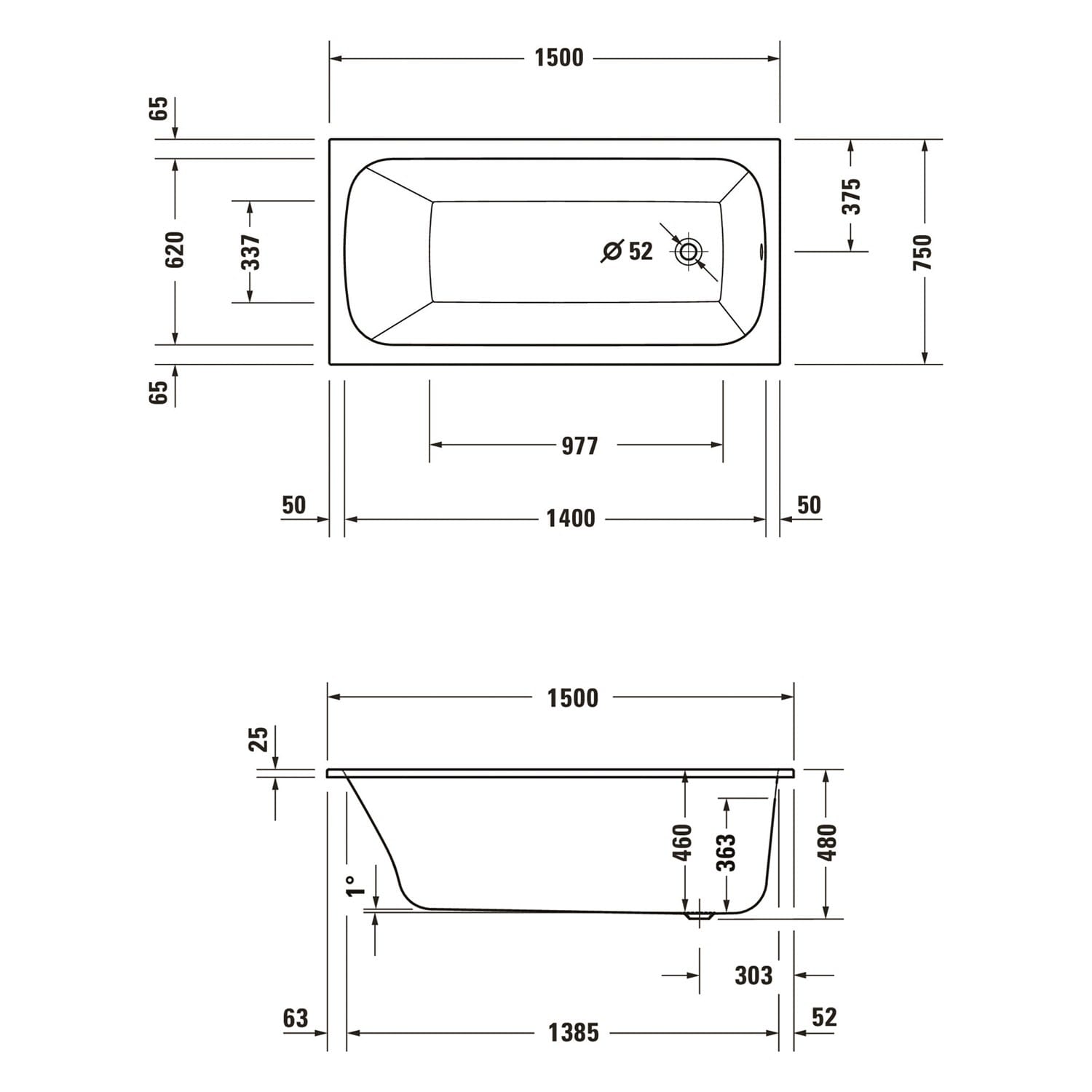 Duravit Qatego Rechteck-Badewanne 150 x 75 cm, Einbauversion