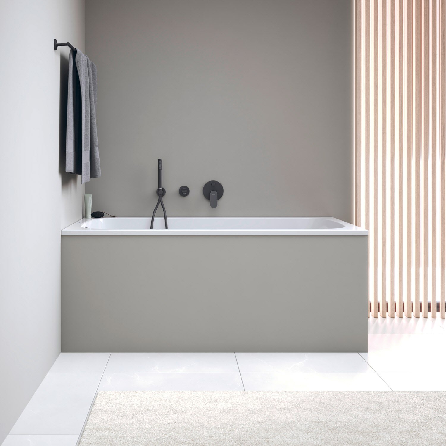 Die Montage eines Duravit Wannengriffs für einen sicheren Ein- und Ausstieg ist möglich (Montage nur ab Werk möglich).
