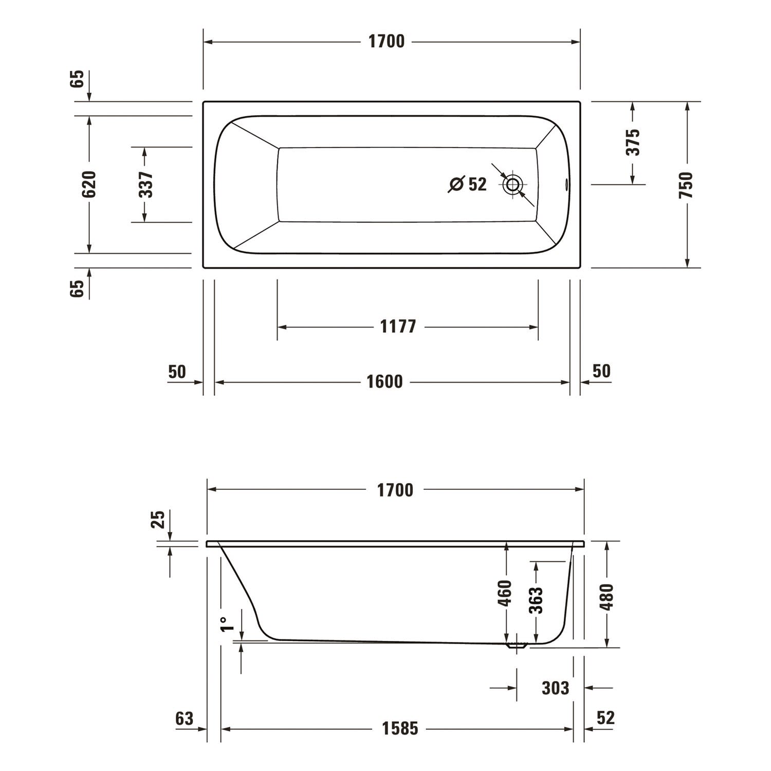 Duravit Qatego Rechteck-Badewanne 170 x 75 cm, Einbauversion