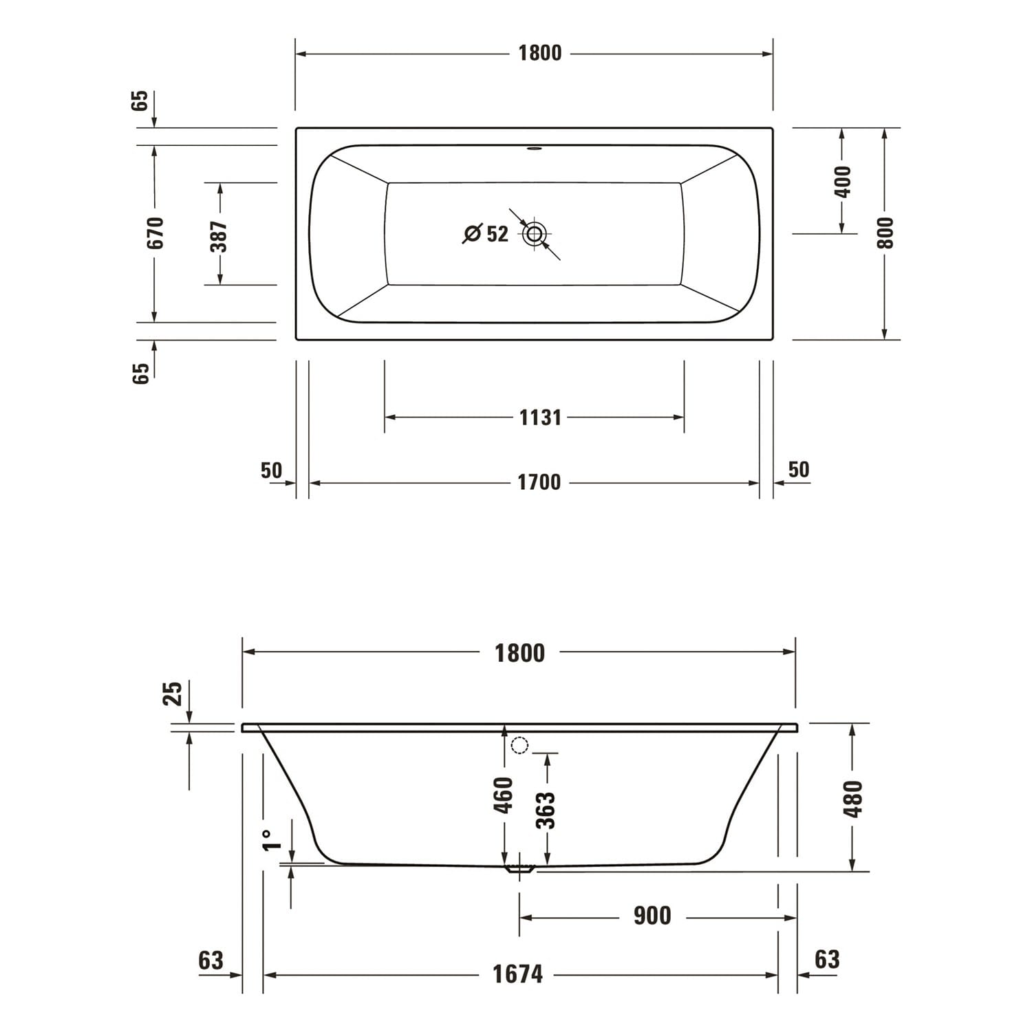 Duravit Qatego Rechteck-Badewanne 180 x 80 cm, Einbauversion
