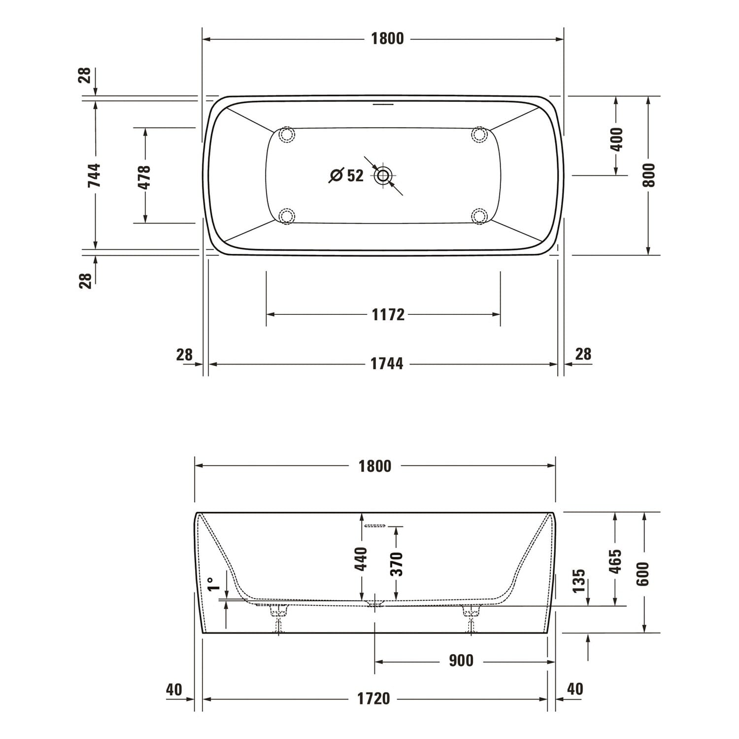 Duravit Qatego Rechteck-Badewanne 180 x 80 cm, freistehend