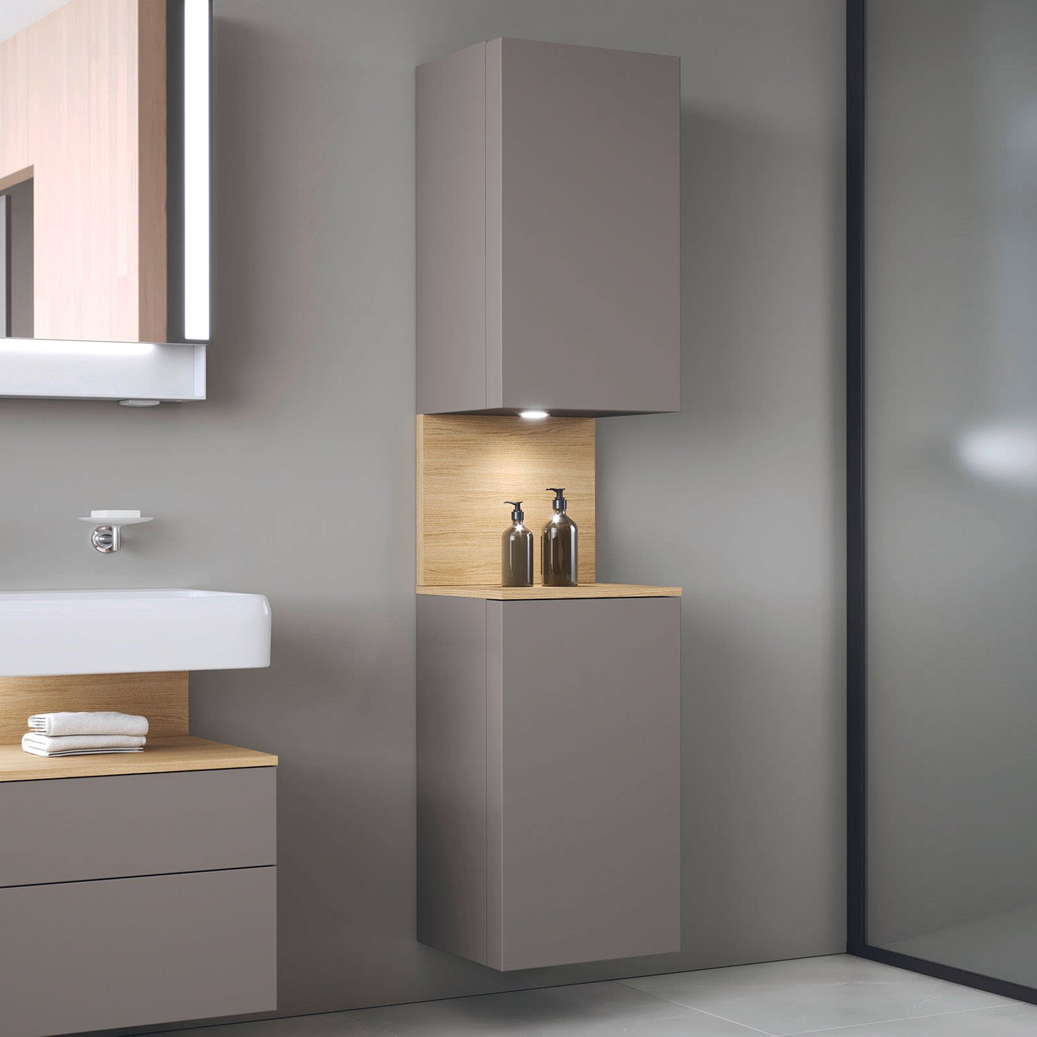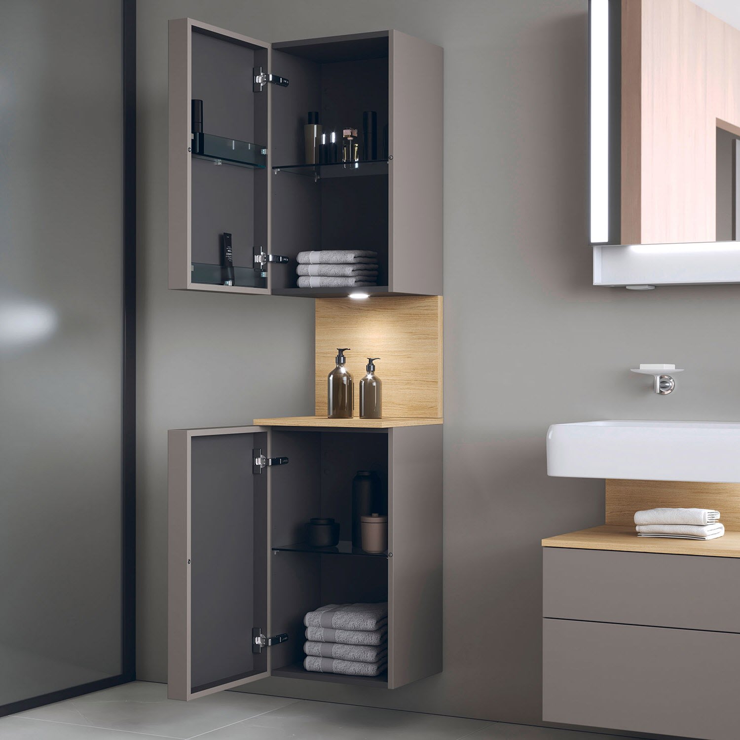 Duravit Qatego Hochschrank 40 x 176 cm, 2 Türen Anschlag links, mit LED Beleuchtung