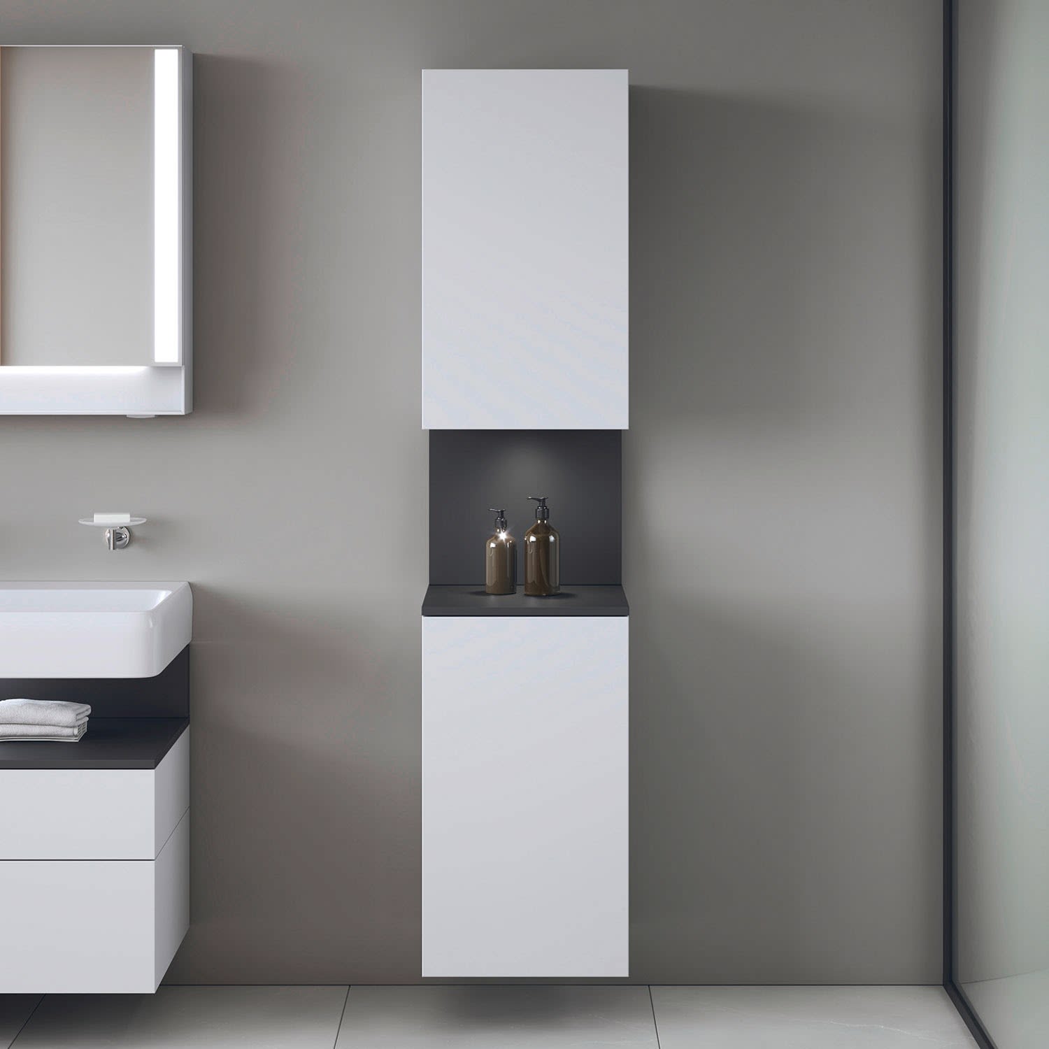 Duravit Qatego Hochschrank 40 x 176 cm, 2 Türen Anschlag rechts, mit LED Beleuchtung