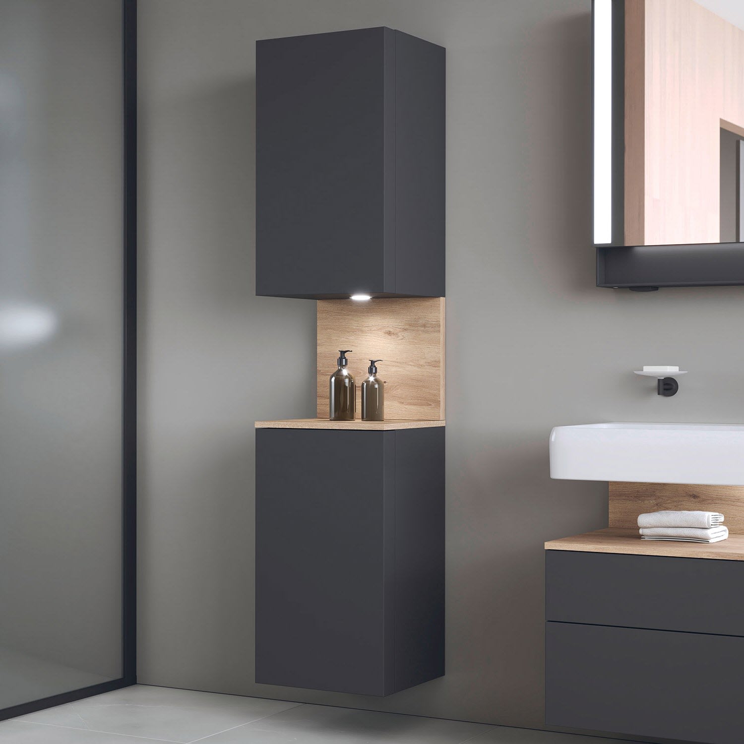 Duravit Qatego Hochschrank 40 x 176 cm, 2 Türen Anschlag rechts, mit LED Beleuchtung