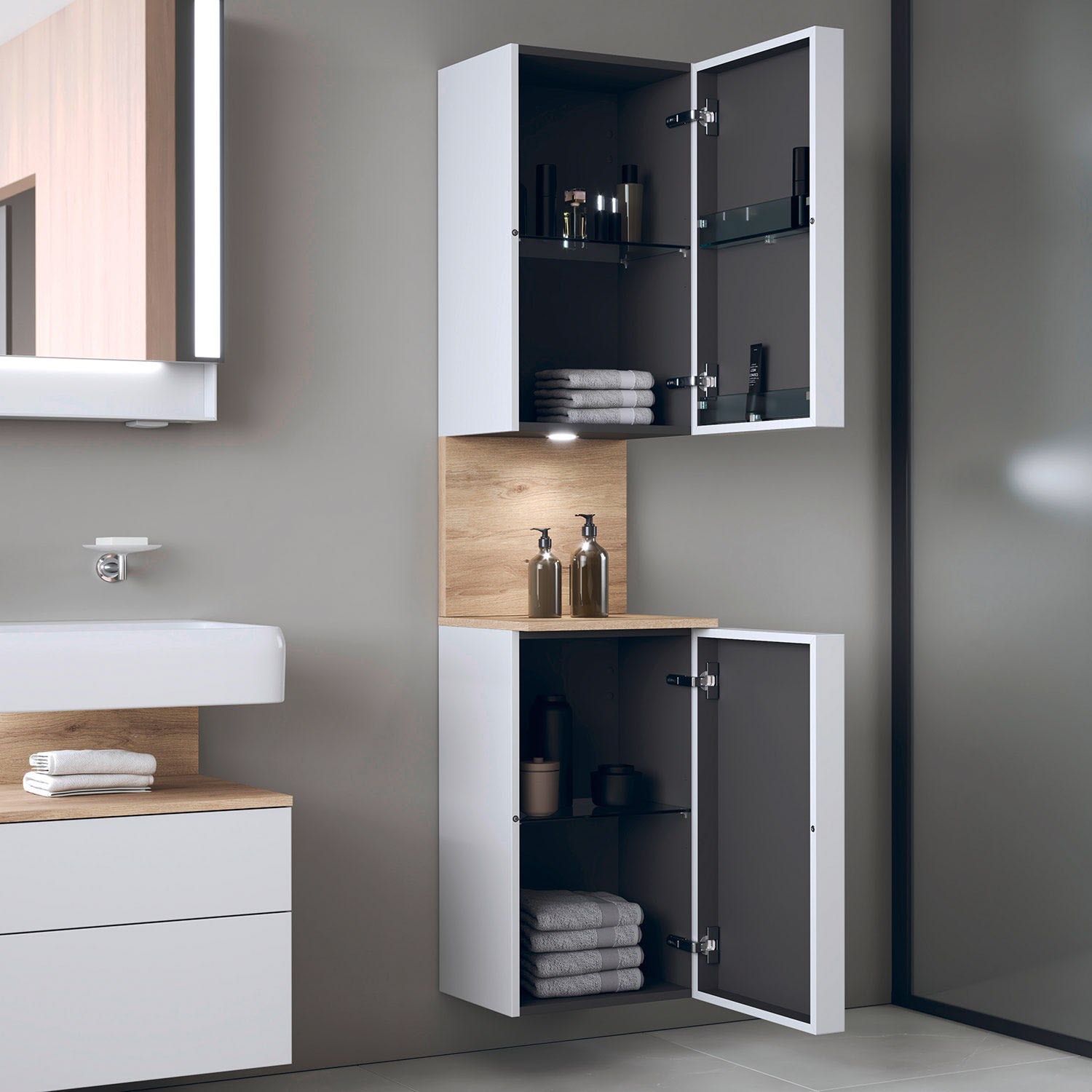 Duravit Qatego Hochschrank 40 x 176 cm, 2 Türen Anschlag rechts, mit LED Beleuchtung