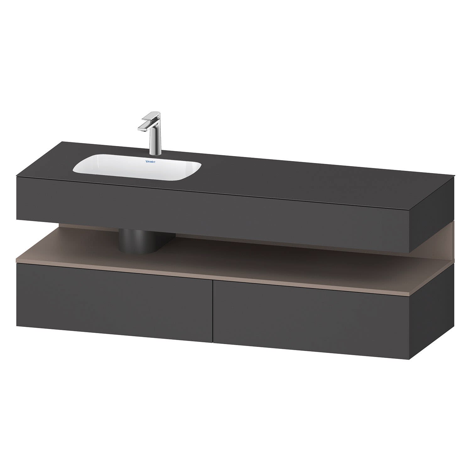 Duravit Qatego Einbauwaschtisch links mit Konsolenwaschtischunterbau 160 x 60 cm, 1 Auszug, mit LED Beleuchtung