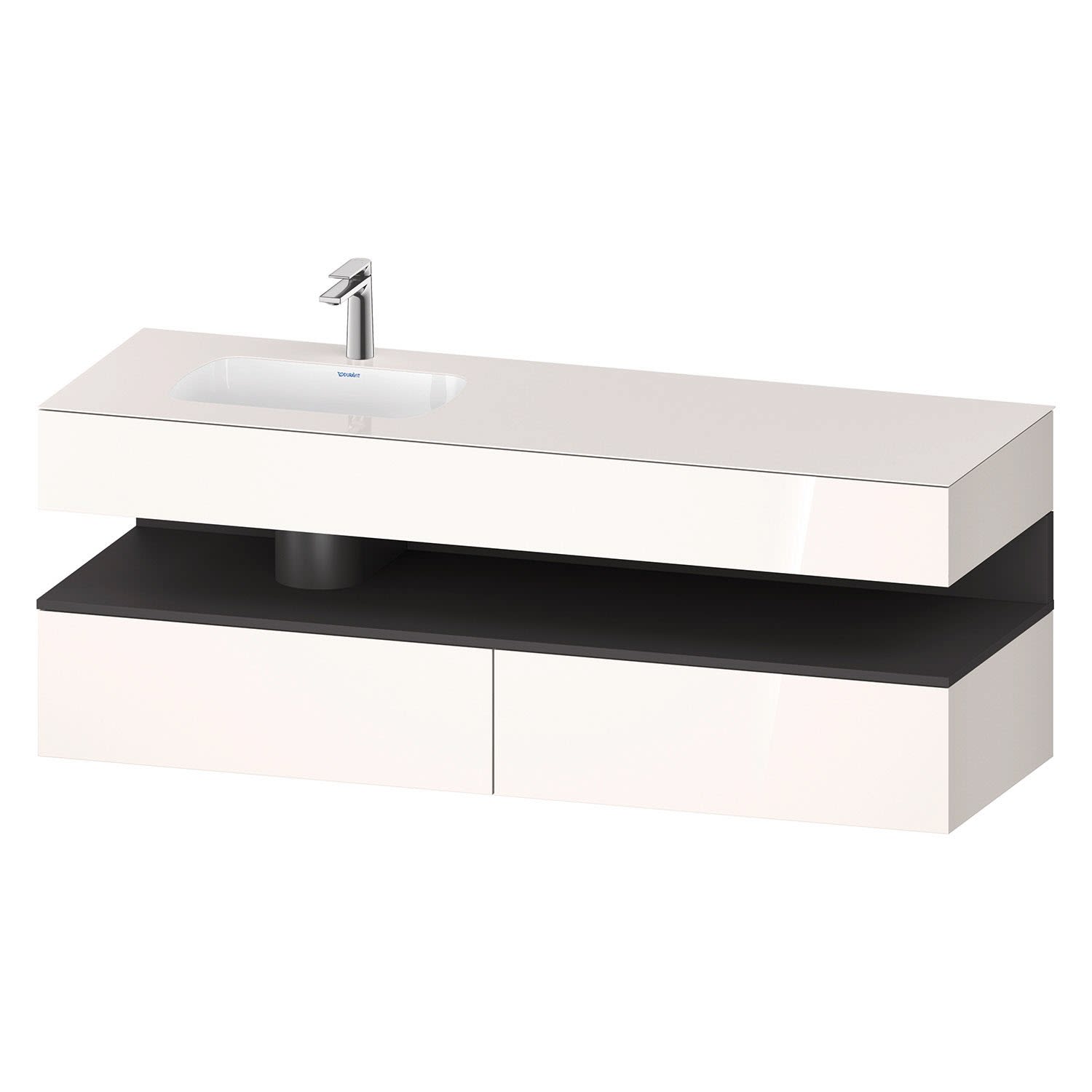 Duravit Qatego Einbauwaschtisch links mit Konsolenwaschtischunterbau 160 x 60 cm, 1 Auszug, mit LED Beleuchtung