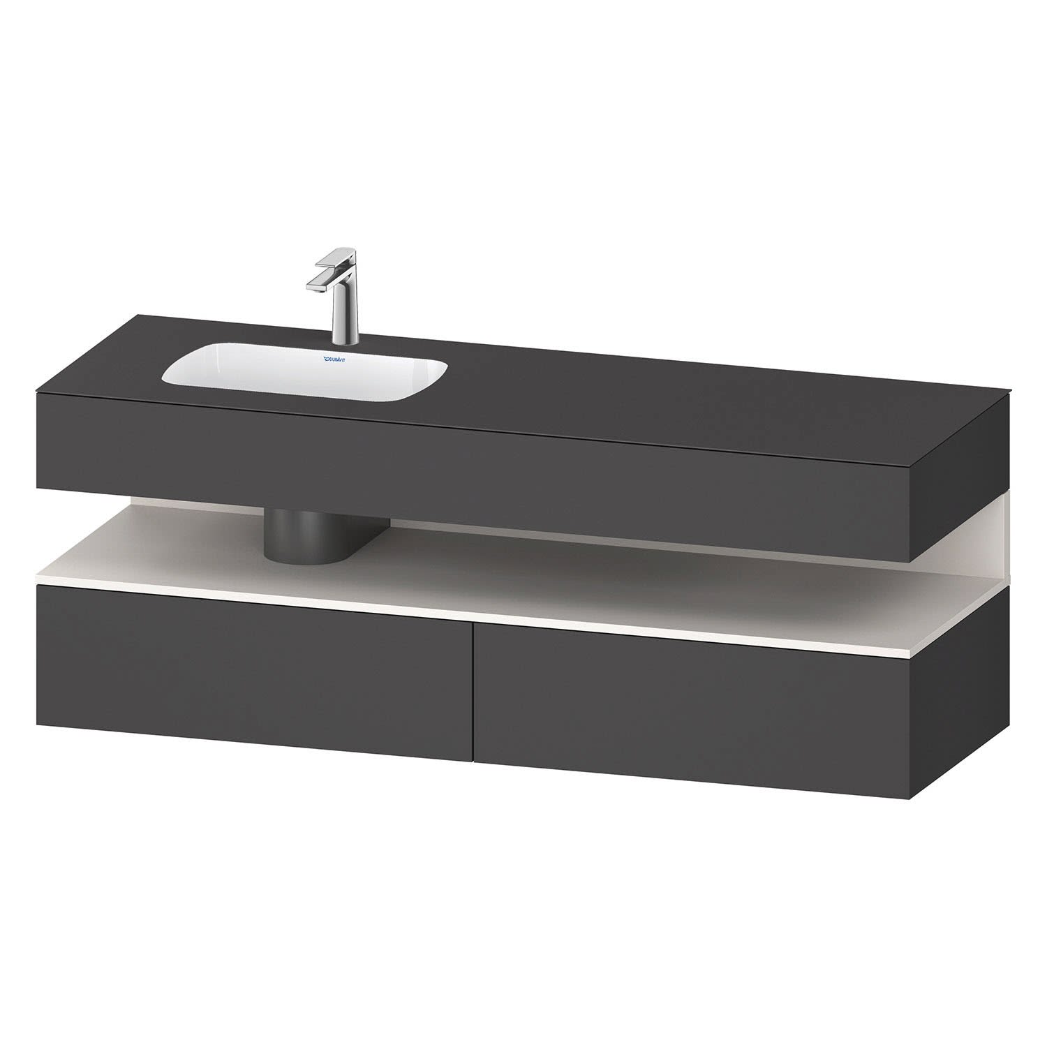 Duravit Qatego Einbauwaschtisch links mit Konsolenwaschtischunterbau 160 x 60 cm, 1 Auszug, mit LED Beleuchtung