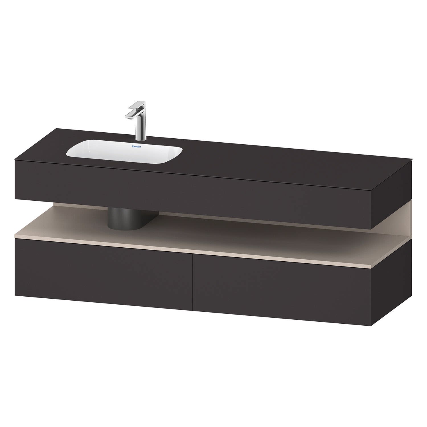 Duravit Qatego Einbauwaschtisch links mit Konsolenwaschtischunterbau 160 x 60 cm, 1 Auszug, mit LED Beleuchtung