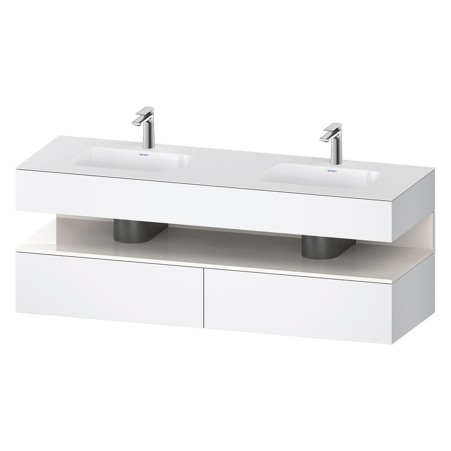 Duravit Qatego Einbauwaschtisch links und rechts mit Konsolenwaschtischunterbau 160 x 60 cm, 1 Auszug, mit LED Beleuchtung