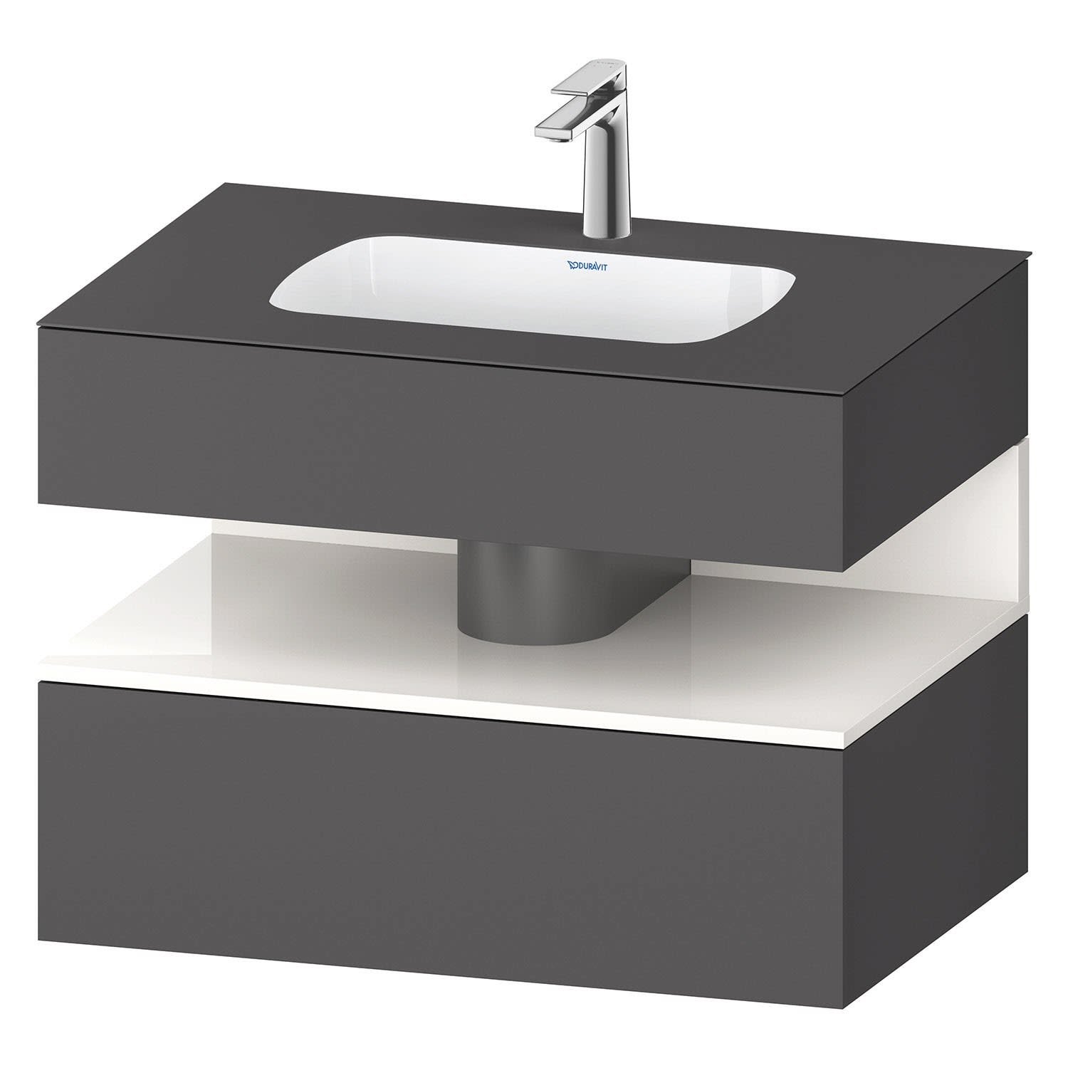 Duravit Qatego Einbauwaschtisch mit Konsolenwaschtischunterbau 80 x 60 cm, 1 Auszug, mit LED Beleuchtung