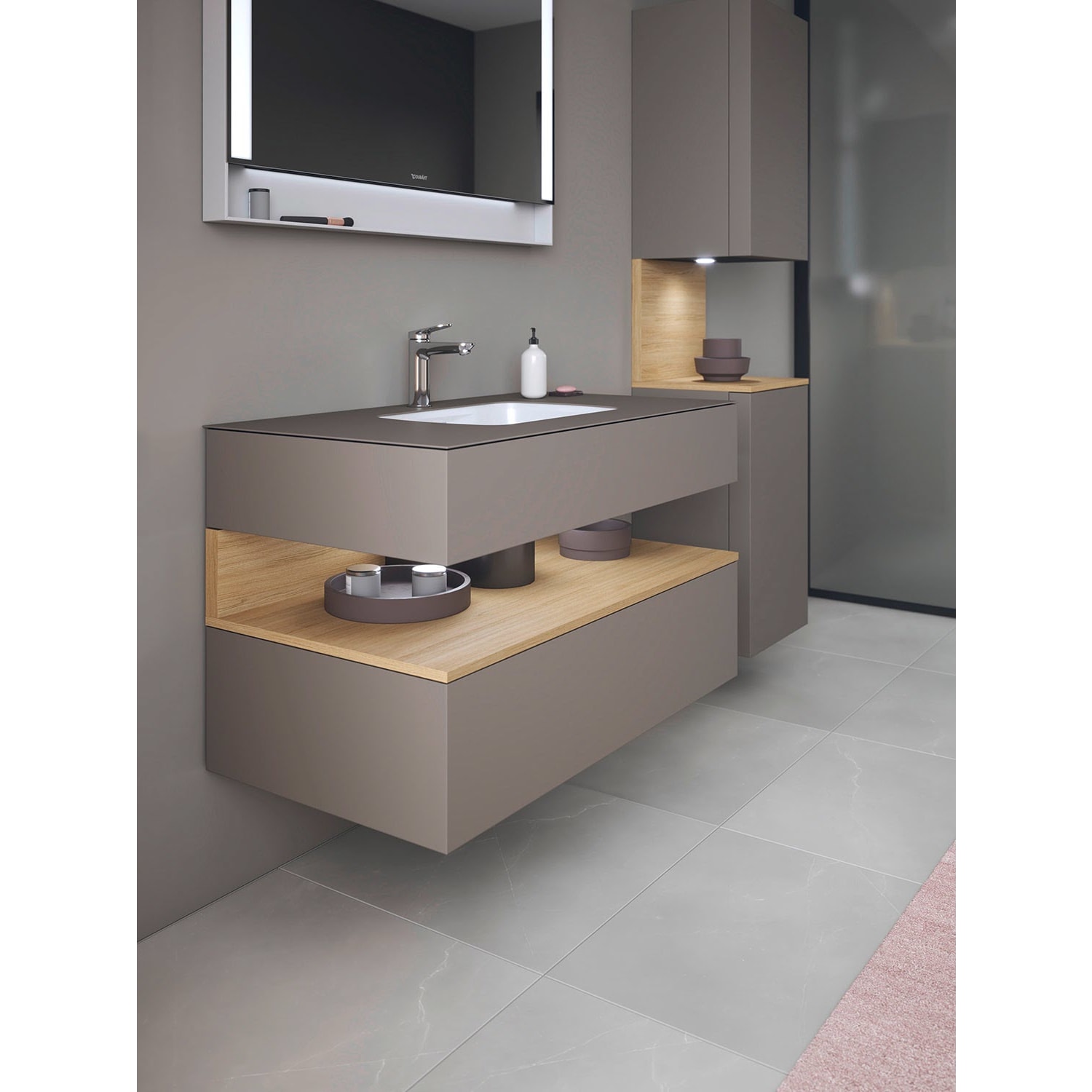 Duravit Qatego Einbauwaschtisch mit Konsolenwaschtischunterbau 80 x 60 cm, 1 Auszug, mit LED Beleuchtung