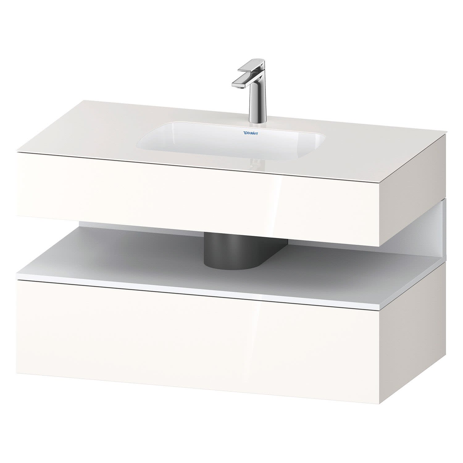 Duravit Qatego Einbauwaschtisch mit Konsolenwaschtischunterbau 100 x 60 cm, 1 Auszug, mit LED Beleuchtung