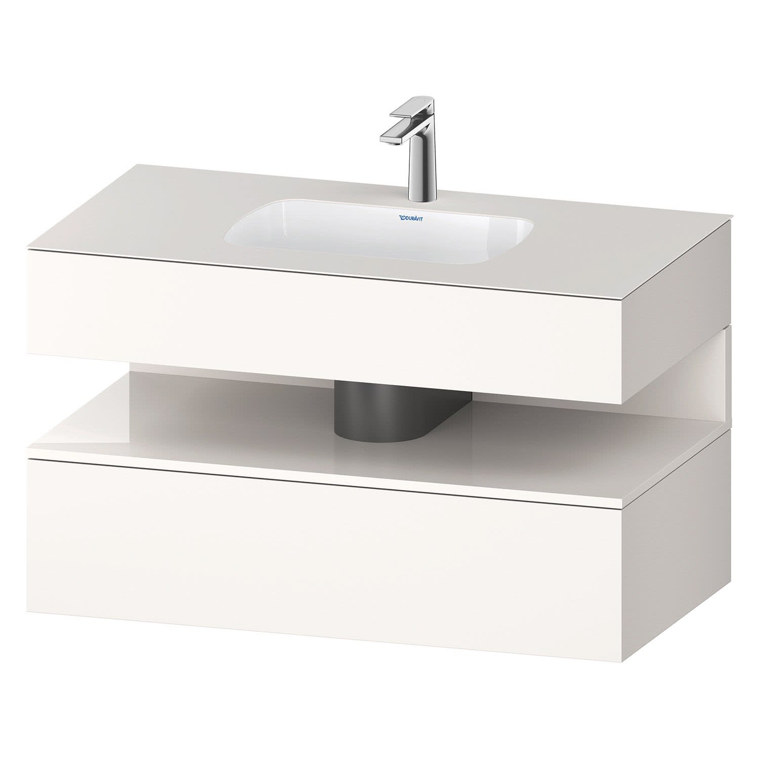 Duravit Qatego Einbauwaschtisch mit Konsolenwaschtischunterbau 100 x 60 cm, 1 Auszug, mit LED Beleuchtung