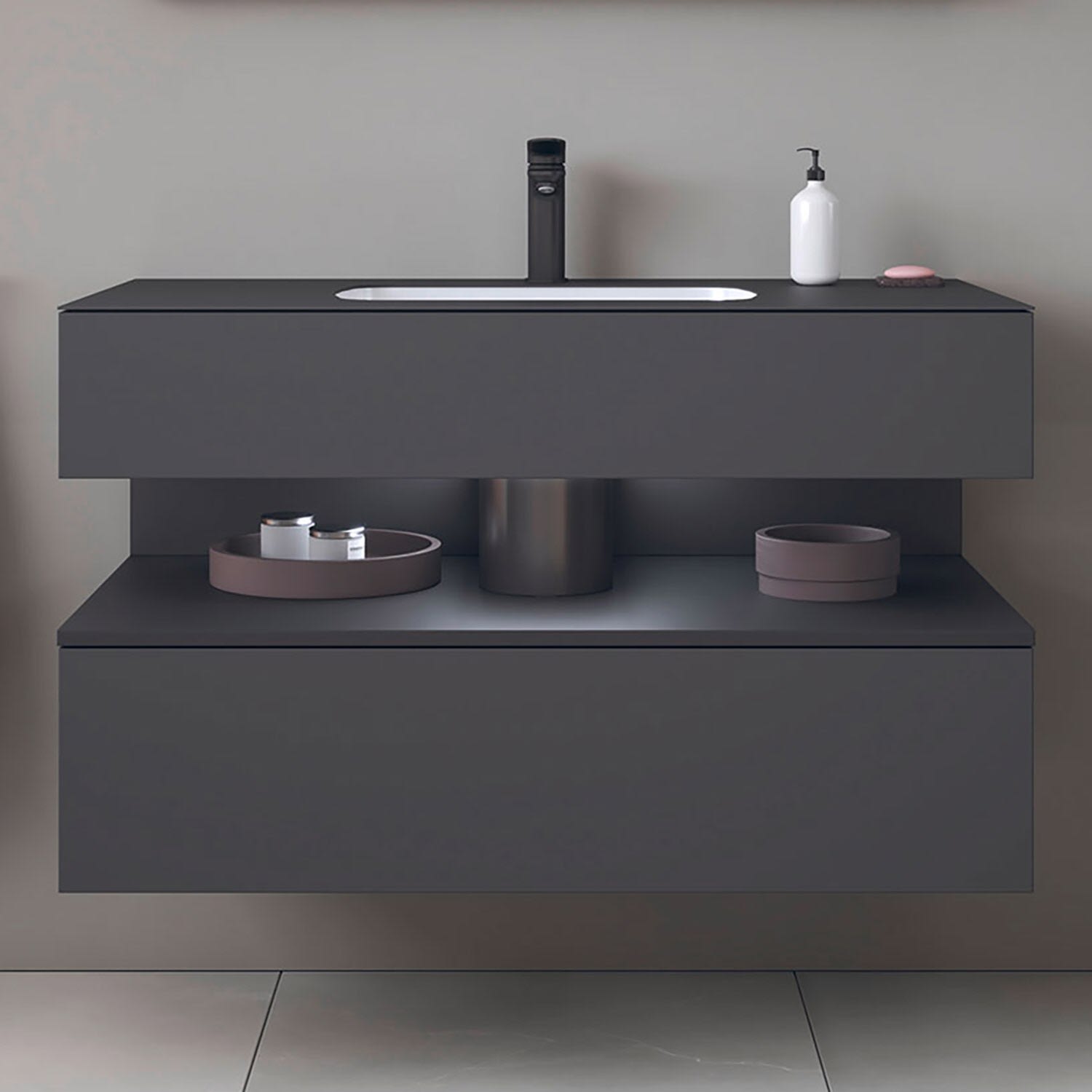- mit Siphonschürze aus Stahlblech geformt in anthrazit