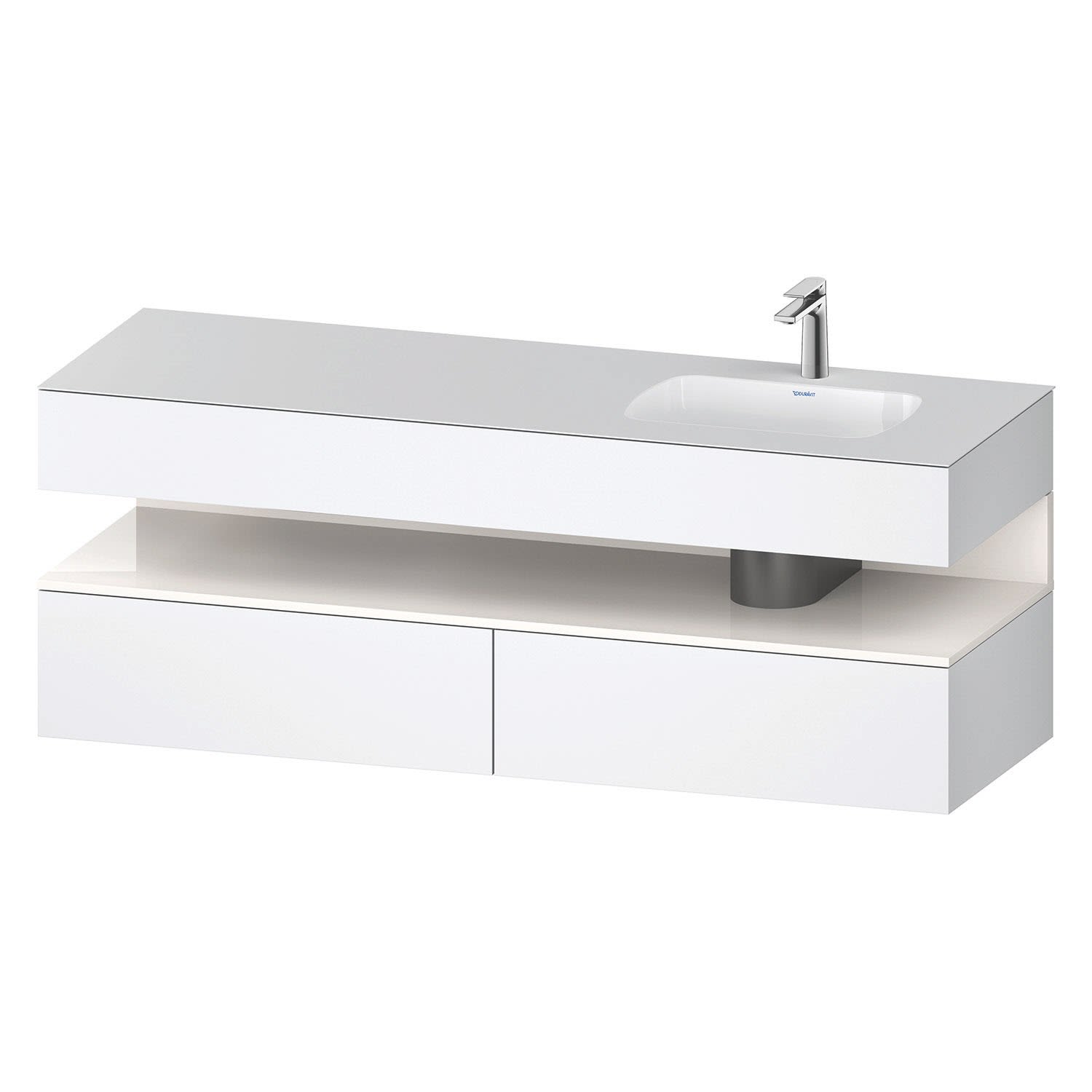 Duravit Qatego Einbauwaschtisch rechts mit Konsolenwaschtischunterbau 160 x 60 cm, 1 Auszug, mit LED Beleuchtung